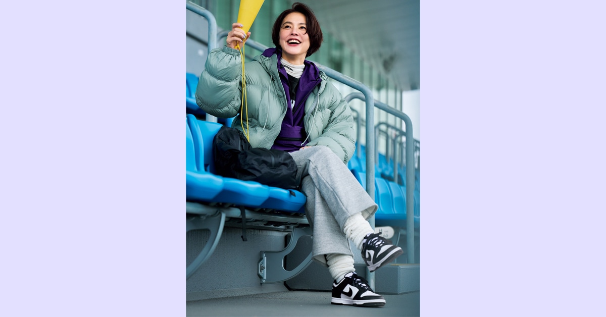 屋外でのスポーツ観戦は、ひざ下まわりの防寒を重点的に!ボリュームソックスをインしてももたつかないパンツ選びもポイント/明日なに着る?