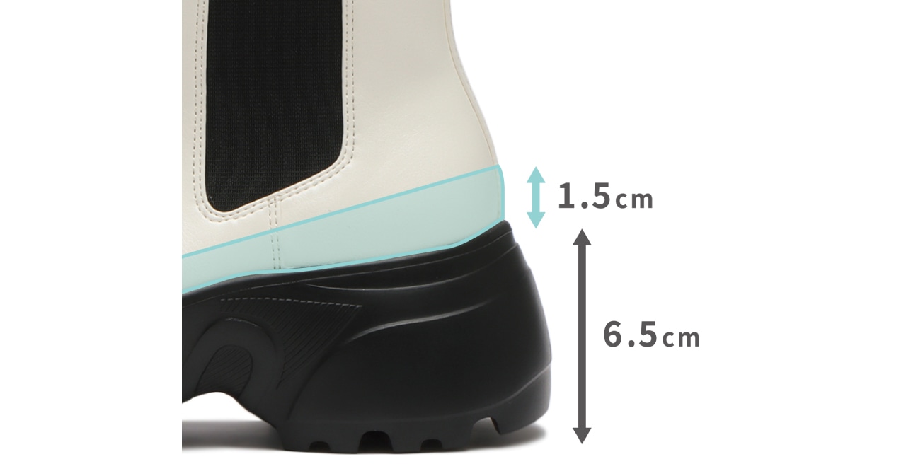 フロントジップタイプと同じく、厚さ6.5㎝のスニーカーソール+1.5㎝のインヒールの合計8㎝で、ノンストレスにスタイルアップが叶います!