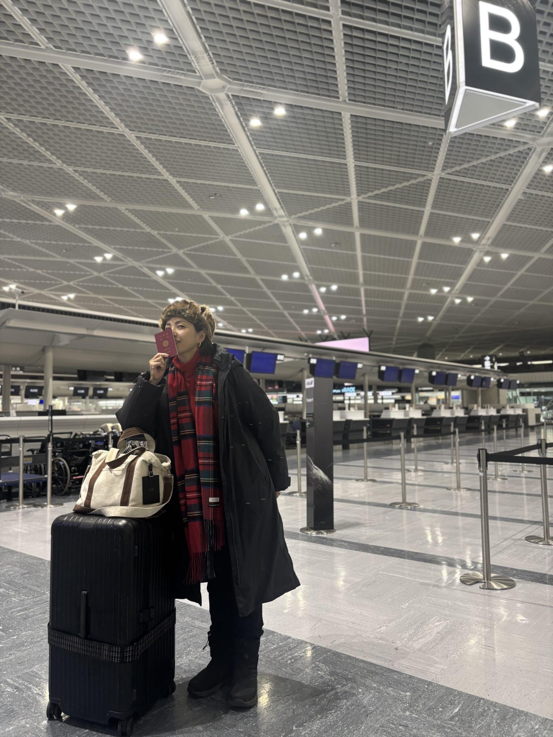 ダウンベスト/上と同じ ニット¥12100/シップス インフォメーションセンター(シップス エニィ) パンツ(サスペンダー付き)¥15400/スローブ イエナ 自由が丘店(スローブ イエナ) ピアス¥46200/マリハ バッグ¥26400/スタンダードサプライ 二子玉川(スタンダードサプライ) スカーフ¥22000/マニプリ 靴¥12980/ハルタ カチューシャ・カットソー/スタイリスト私物