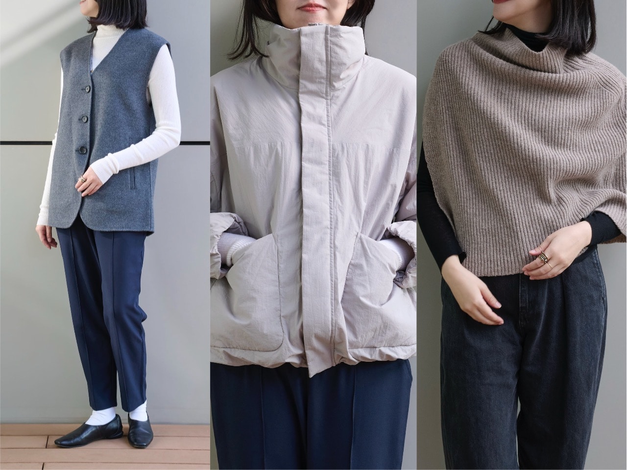 グレーのワントーンコーデに明るさと女性らしさを呼び込む、ほんのりスモーキーなライトピンクのロングダウン。すっきりとしたIラインシルエットが、真冬の着こなしをスマートなスタイルに導きます。体にフィットするようアームホールをゴムのシャーリングにしたり、フロントファスナー部分を二重にするなど、寒冷時もしっかりと体を守るようにデザインされています。