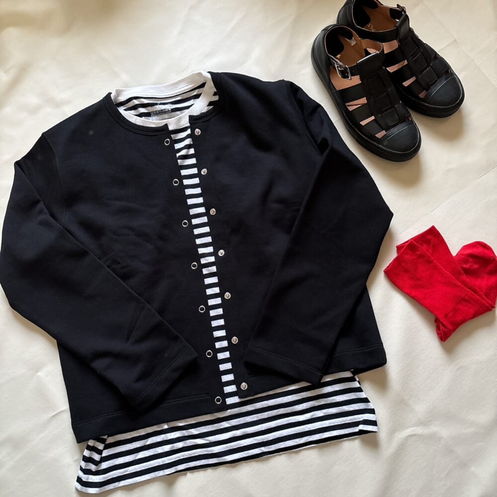 【無印良品】のスウェットカーディガンでフレンチベーシックな着こなしが出来ます