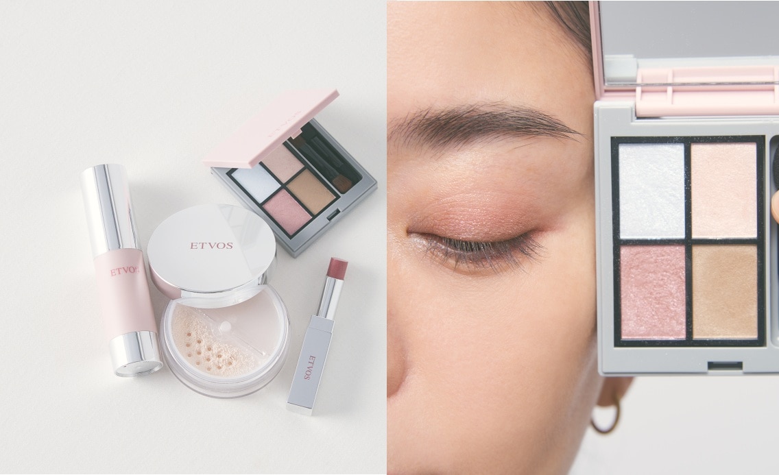 しっとりした粉質と繊細な輝きで、クールトーンのピンクと、シルバー感のあるブルーハイライトが透明感がありつつも上品な冬らしい目もとを作ってくれます。やわらかな色合いで、普段使いにも◎ ベースメイクも優秀で、マカロンピンクのトリートメントベースと粉雪のようなパウダーで、ワントーン明るくほどよいツヤのマシュマロ肌に! 大人の肌でも、繊細なカラーのポイントメイクが映えるのがうれしいですよね。エトヴォスの製品は、天然由来のミネラルを配合していて、肌負担の少ない低刺激処方で、石けんで落とせるところも魅力。トリートメントベースには肌にやさしい美容成分が惜しみなく配合されていて、アイカラーやリップにもケア成分が入っているから、乾燥がすすむこれからの季節に活躍してくれること間違いなし!