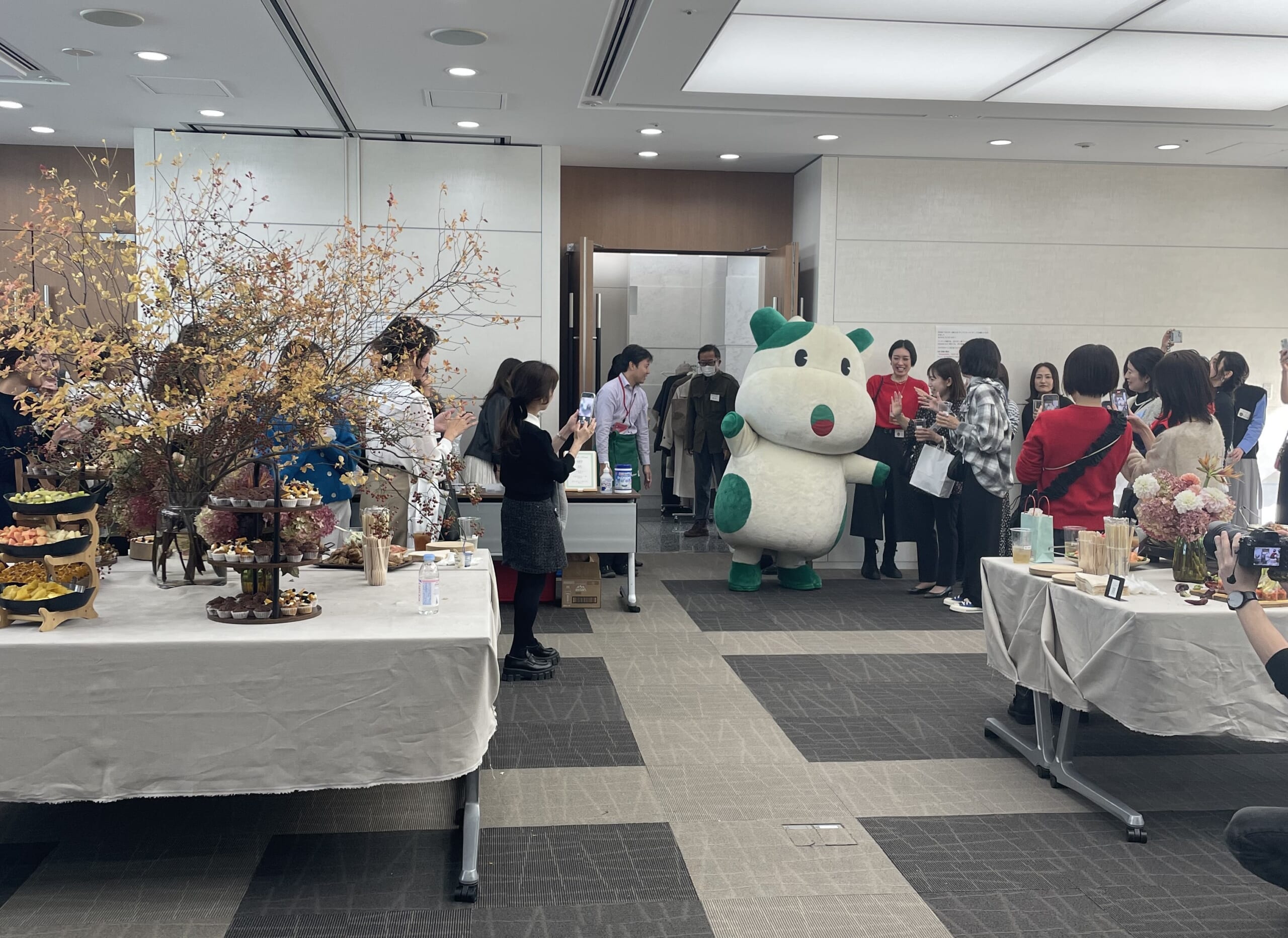パーティ序盤では今回のパーティに協賛いただいたパルシステムの「こんせんくん」が登場し、会場を沸かせてくれました! こんせんくんは生協パルシステムの公式キャラクター。公式ホームページのプロフィールによると「1歳の男の子。北海道根釧(こんせん)地方の牧場生まれ」なのだそう。記念撮影にも引っ張りだこの人気者でした!
