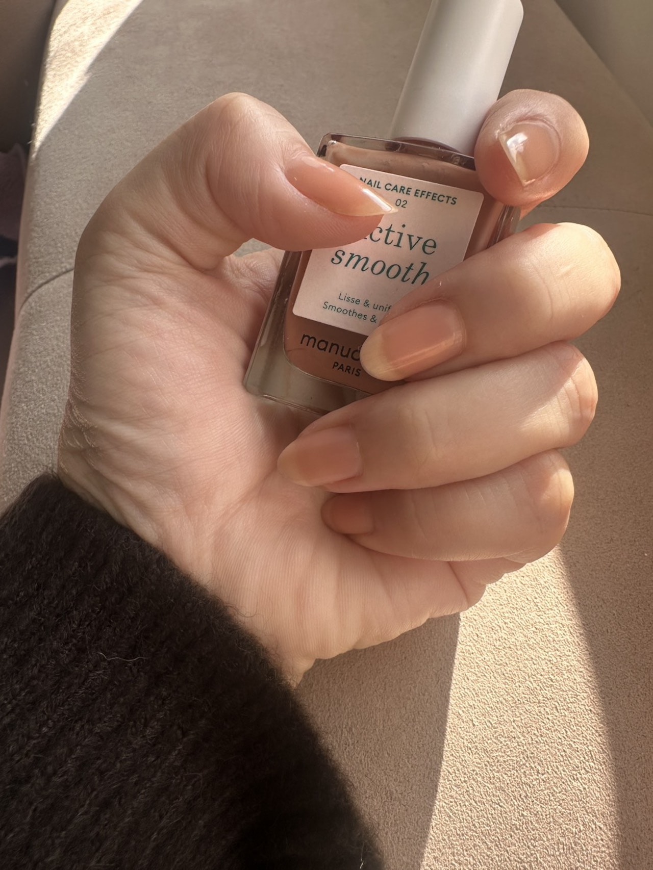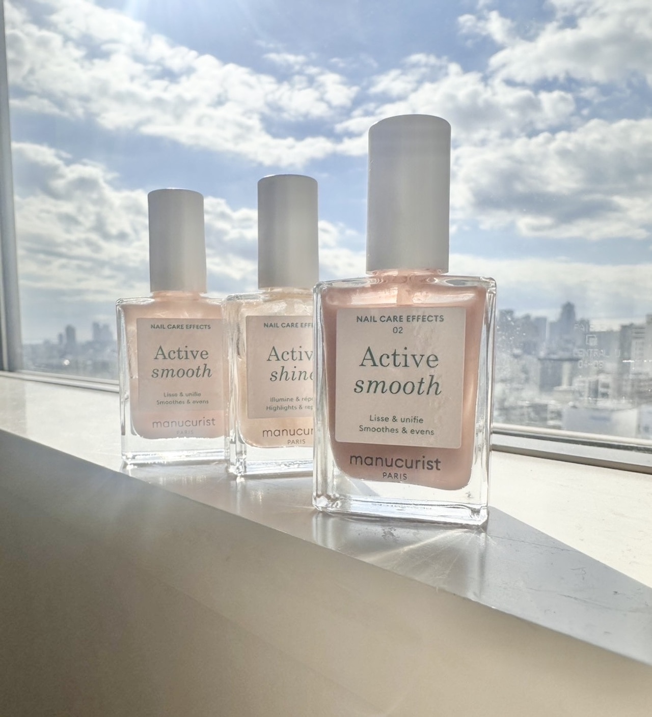 「マニキュリストの『アクティブ』シリーズに今年加わった『スムース 02』。これが私にとって最高に”ちょうどいい”ネイルです。植物由来成分でビーガン、有害成分は不使用という爪にも環境にも優しい処方はマニキュリストならでは。その中でも2024年に発売された『アクティブ』シリーズは、まるで素の爪のように見せながら、ケアも同時にできるタイプ。透明に色づく『グロウ』や、繊細なパールが入った『シャイン』など、11種類がラインナップされています。