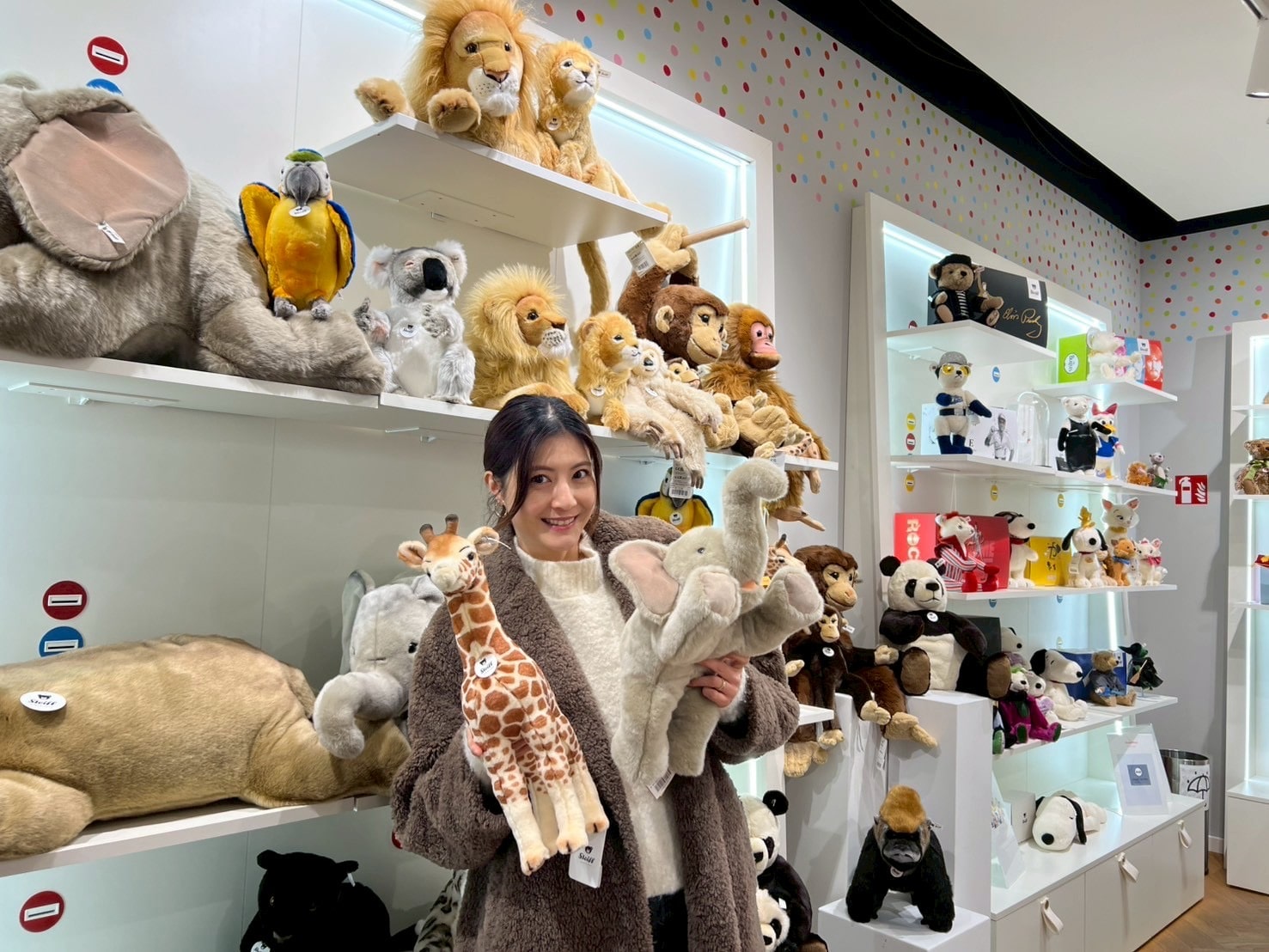 いろいろな動物のぬいぐるみは、とても大きなものから手のひらサイズのものまで。アパレルもあって、すごくかわいいです♡