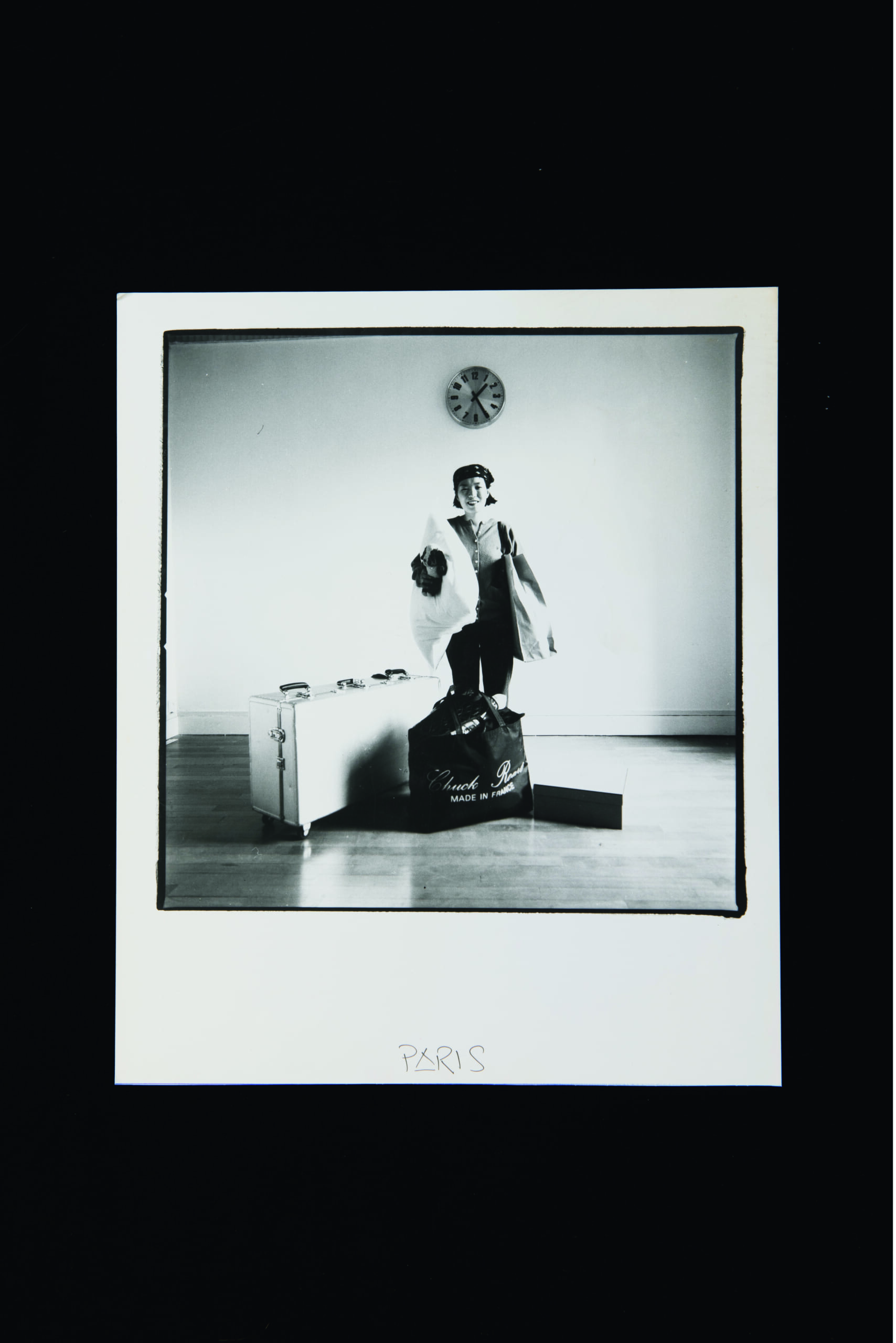 こちらは33年前、チャコさんがパリに降り立ってまもなく、記念にと撮ったポラロイド!大きなスーツケースや頭にバンダナを巻いた姿が印象的です。この頃から、チャコさんスタイルのベースは変わってないのかもしれません。