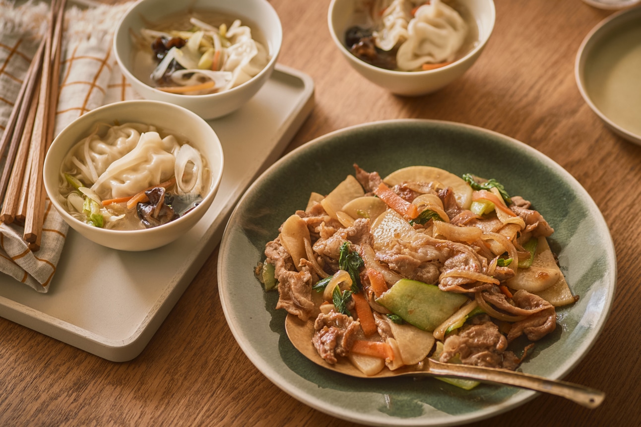 「豚とかぶの玉ねぎソース炒め」と「具だくさん餃子スープ」の献立は、普段不足しがちな野菜類もたっぷり摂れて、食べ応えも抜群。娘さんからも「もっと食べたい!」「スープおかわり!」と大好評でした。
