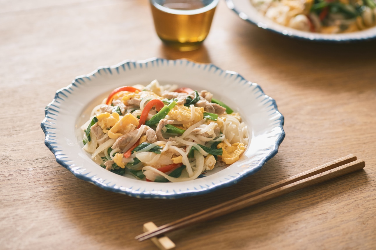 豚肉に豊富なビタミンB1が、フォーに含まれた糖質の代謝を助けてくれるからヘルシー。麺のモチモチした食感とほんのり効いたさわやかなレモン風味が魅力で、肉や野菜が豊富だから食べごたえ抜群。
