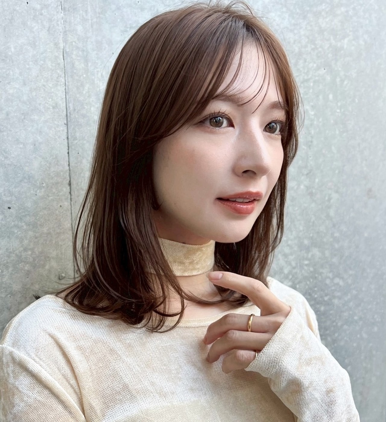 薄めに作る前髪は大人でも挑戦しやすい長さで、おでこを透けさせることで顔に抜け感を出ますので、今っぽさと垢抜けたイメージに。スタイリング剤で、髪にツヤと束感を出して、大人ミディアムにアップデートしてみてはいかがでしょうか!