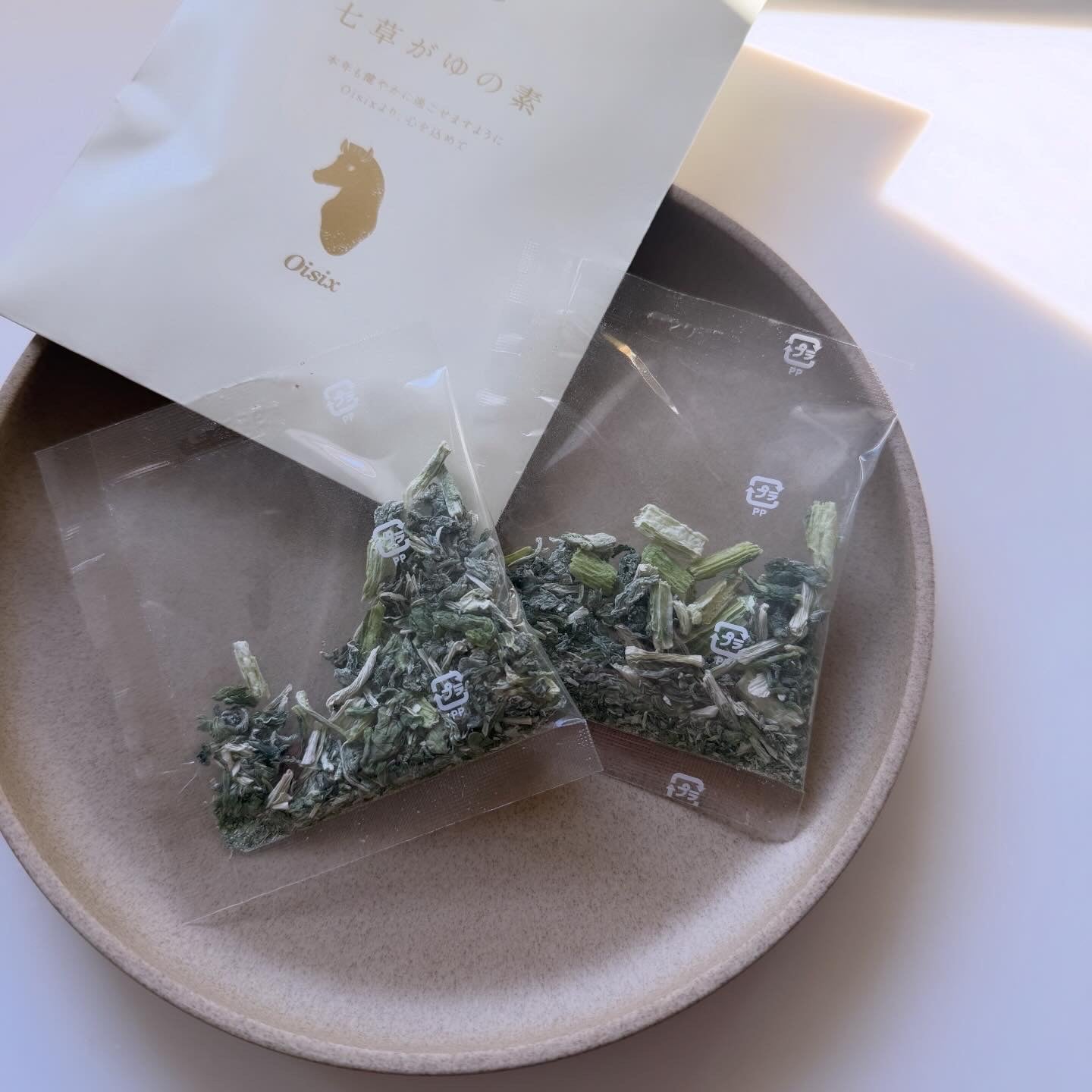 そんな時に見つけたのが Oisix のフリーズドライ加工の七草がゆの素! 元々は、おかゆに混ぜて食べる用なのですが、わが家では、おみそ汁やお吸いもの、たまご焼きなどに入れて食べることが多いです」