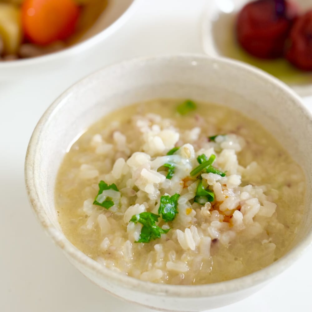 鶏のだしが効いた、食べごたえある七草雑炊。朝からついつい食べすぎてしまいそうです」