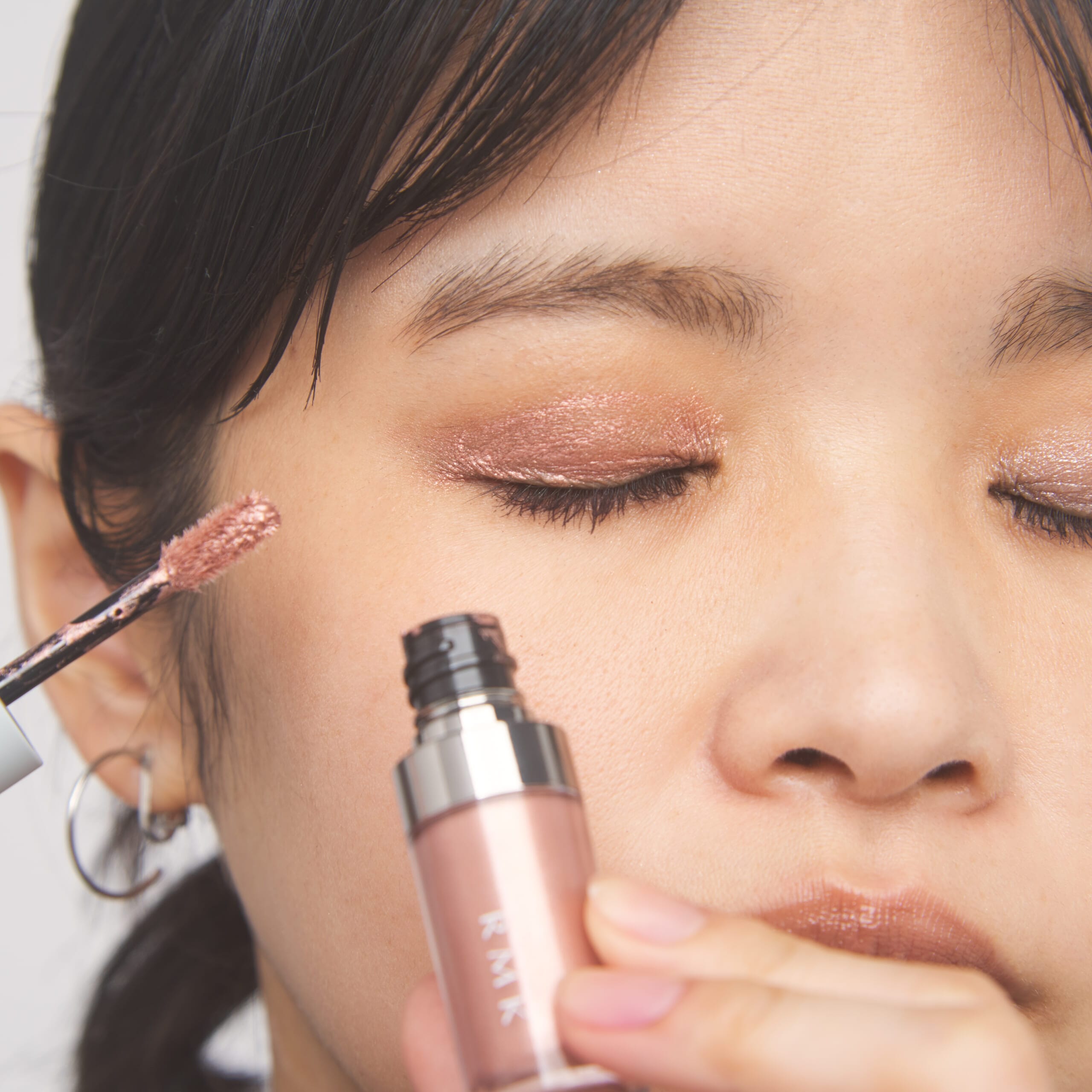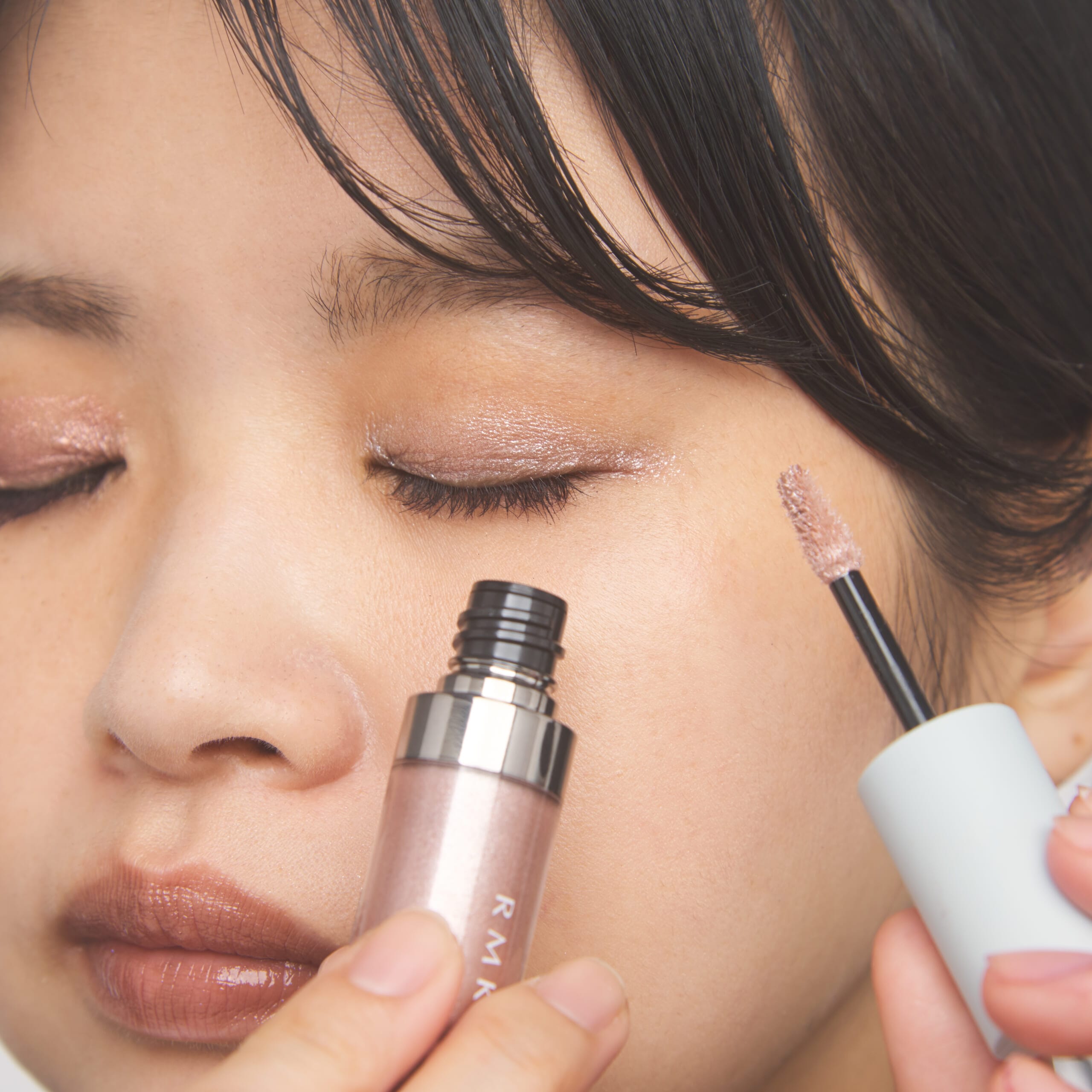 注目は新作の「RMK リッド インプレッション リクイド アイシャドウ」。ひと塗りで濡れたようなつやめきと、自然な陰影を叶えてくれる単色のリキッドアイシャドウ。色と輝きが織りなすハーモニーで、やわらかで印象的なまなざしに。