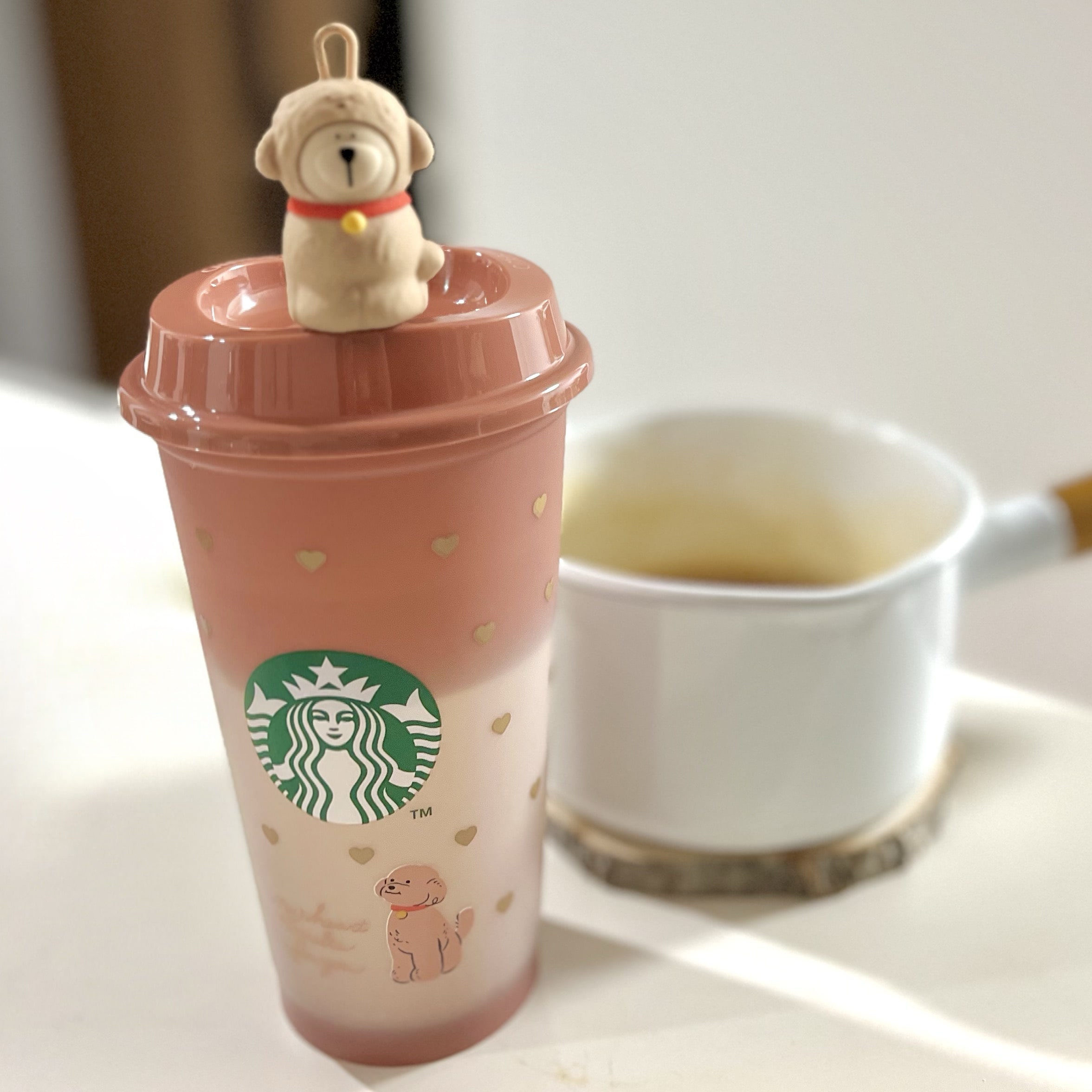 スターバックスでバレンタインシーズン限定のカラーチェンジングリユーザブルカップを購入しました☕️💗 店頭で見た瞬間に「これはかわいい…!」と、思わず手に取ってしまいました✨🐶見た目のかわいさだ
