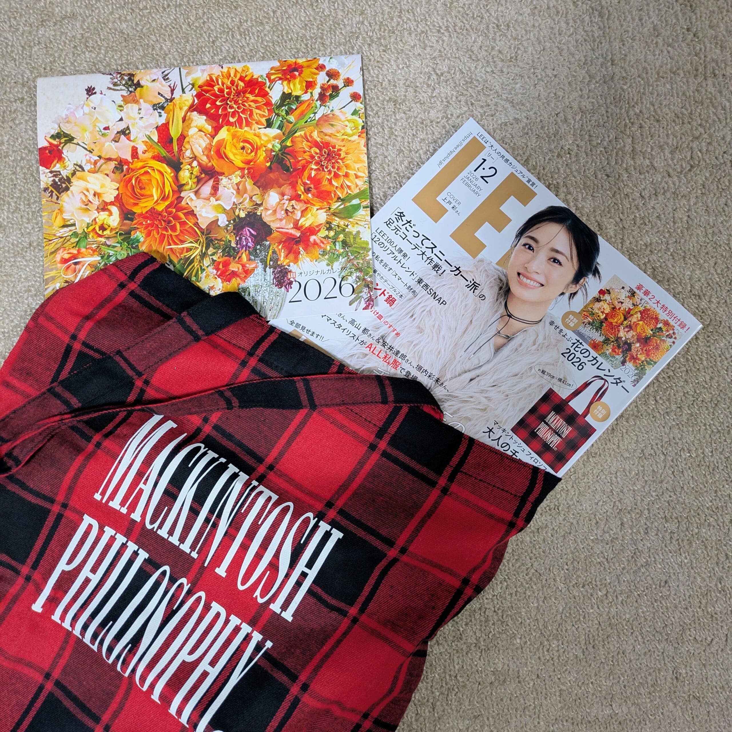 ※LEE1・2月号通常版には豪華2大特別付録「マッキントッシュ フィロソフィー 大人のチェック柄BIGトート」と「幸せをよぶ 花のカレンダー2026」がついてきます。
