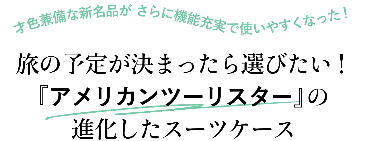 90年以上の歴史を誇り、世界中から愛され続ける老舗スーツケースブランド『アメリカンツーリスター』。軽さと耐久性、整理整頓のしやすい内部構造はもちろん、旅の高揚感をより一層高めてくれるルックスや、ニーズに合わせたバリエーションの豊富さも魅力です。