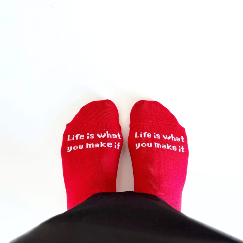 今年、ファッションアイテムでいちばんトライしてみたいと思っていた”赤ソックスコーデ”。今までカラーソックスは持っていなかったけど、差し色としての赤、ずっと気になっていました。そんな中tabioでとっ