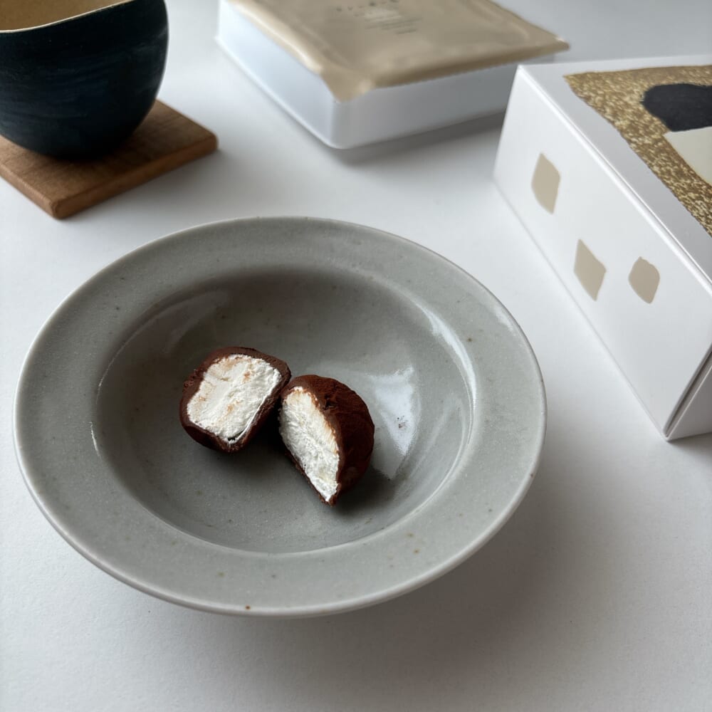 ブラックチョコの方には、 細かく刻んだドライストロベリーを。 深いチョコの色に赤が映えて、 冬のテーブルに小さな実が転がったような可愛さが出ました。