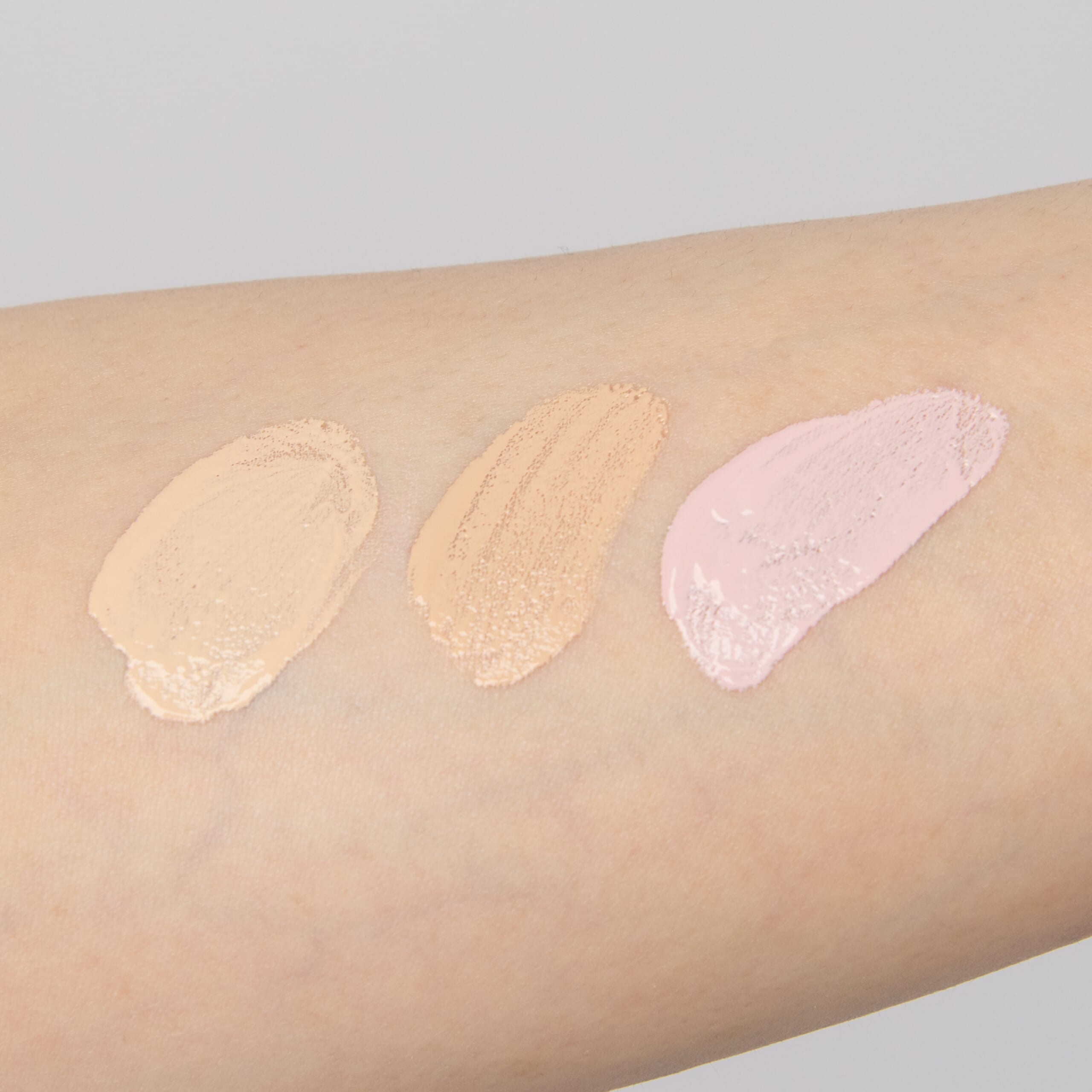 粉感のない薄膜が色ムラなどを自然にカバーしてくれるトーンアップCC。カラーは全3色で、左から【01 light beige】、【02 beige】、【10 lavender rose】。