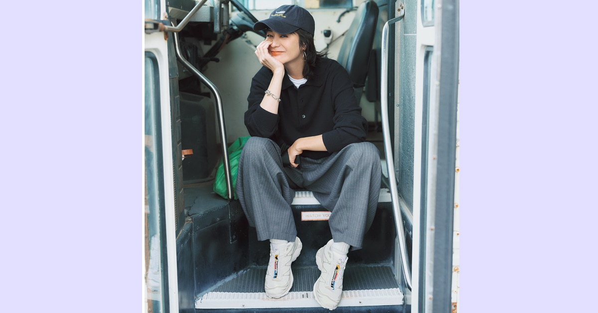 新しいスニーカーは、清潔感あふれるホワイトベースに、淡いグレーのラインとカラフルなタグがアクセント/明日なに着る?