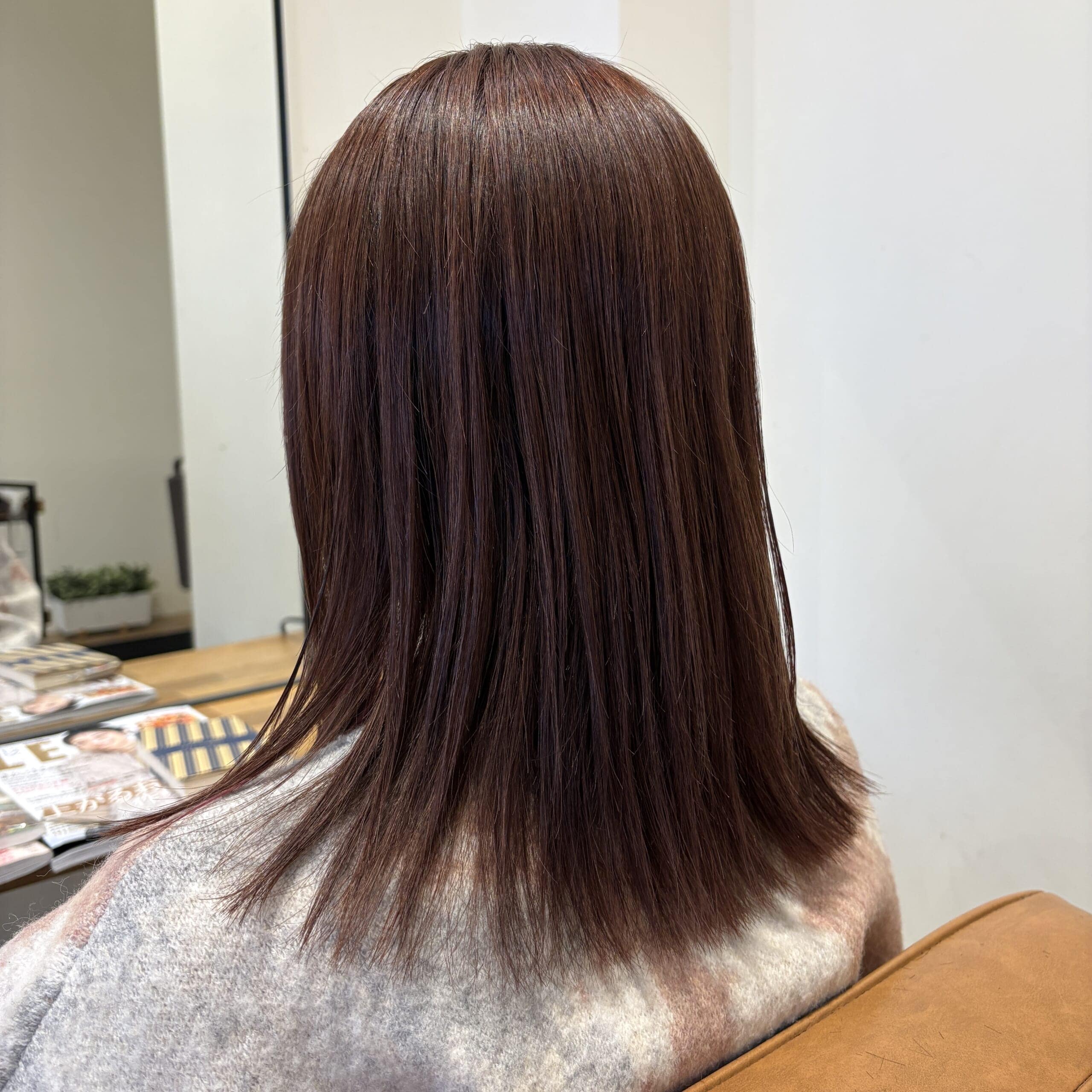 【40代ミディアムヘア】目指せロング!安定のピンクカラーで春ヘアに。