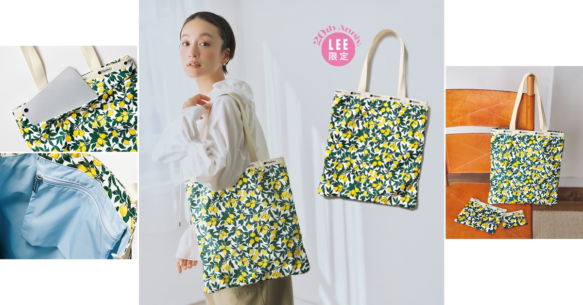 \本誌付録連動企画/ LEE限定! スマートな見た目でザクザク入る レスポートサックのレモン柄トートと出かけよう 明るいカラーのプリントバッグを持つだけで、お出かけの足