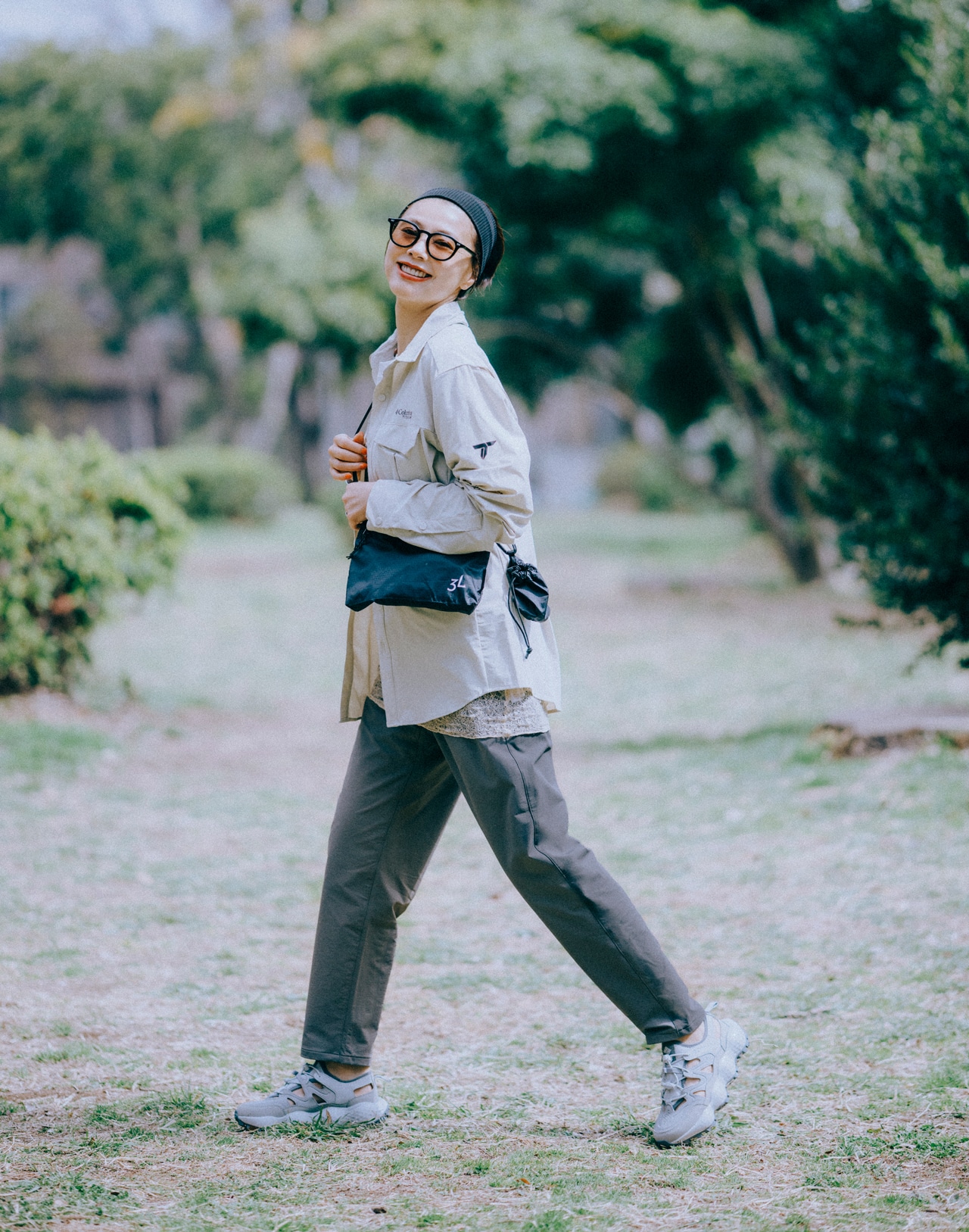 ジャケット(メンズ)¥12100・バッグ¥3300・靴¥13970/コロンビアスポーツウェアジャパン(コロンビア) キャミソール¥3960/アンティローザ(イジ) ヘアバンド¥990/ラヴィッシュゲート サングラス¥50600/アイヴァン 東京ギャラリー(アイヴァン) リング¥22000/フーブス(イリスフォーセブン)