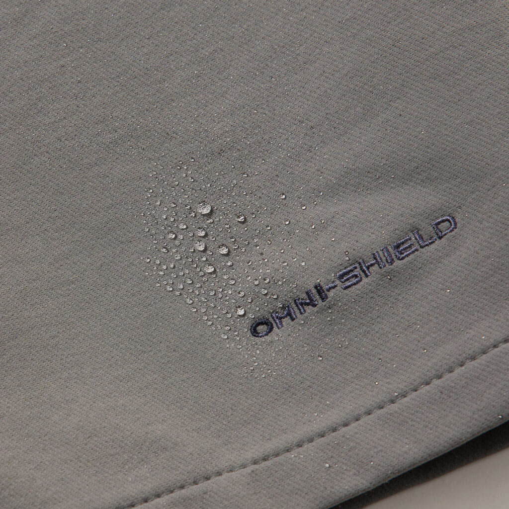 丈夫でストレッチの効いたコーデュラナイロン素材に、ブランド独自の撥水機能「オムニシールド」をプラス。急な雨や水はねから体を守ってくれます。