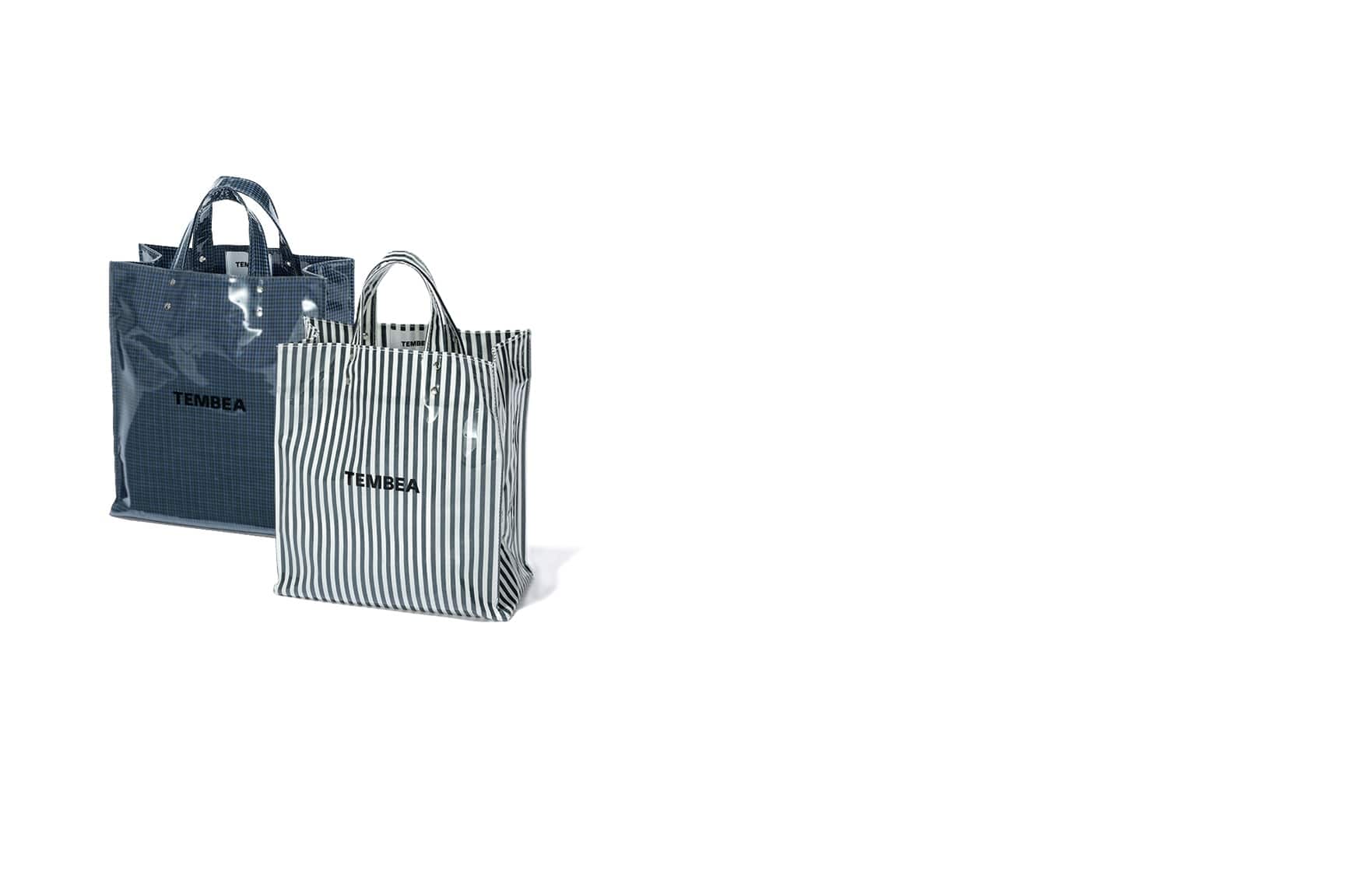 かさばる荷物をスッキリと収納してくれる、マチの広い紙袋型トート。五明さんが愛用する同型のトートをもとに、大人カジュアルにも似合う2柄をセレクトしました。コットンのシャツ生地にPVコーティング加工した素材は、撥水性と耐久性があるのも高ポイント。