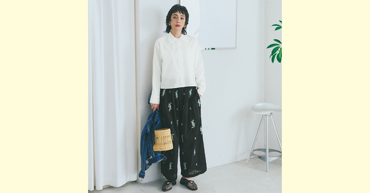 「ミズイロインド」短丈シャツと「ヌキテパ」の柄パンツは、ちょっぴりドレスアップしたい日におすすめ!