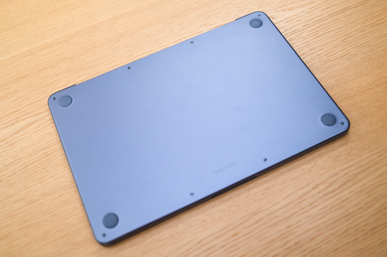 ディスプレイは13インチ、重さは1.23kg。持ち歩きを考えても大き過ぎず、重過ぎず、ほどよいサイズ感です。iPhone 16 Proと同じA18 Proチップを搭載していて、バッテリーは最大16時間駆動。泊まりがけの移動がない方なら、充電器ナシでも充分かと思います。