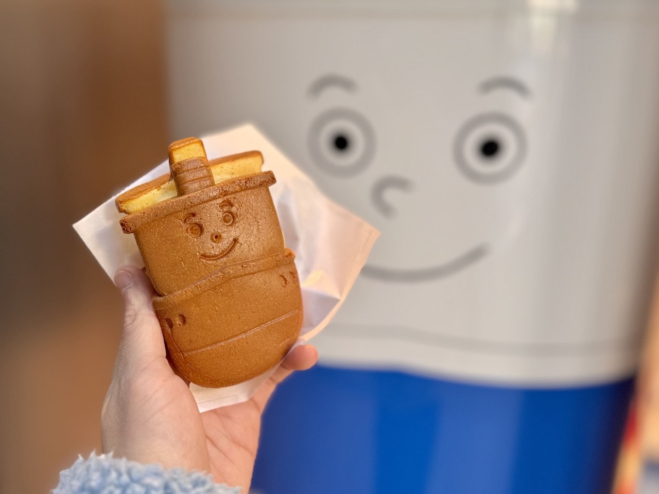 横浜の銘菓「横濱ハーバー」をアレンジしたワンハンドスイーツです。ダブルマロン餡とカスタードクリームをブレンドした特製ダブルマロンクリームを、ハーバーくん型のふわふわのワッフル生地で焼き上げ、できたての状態でサンドしています。