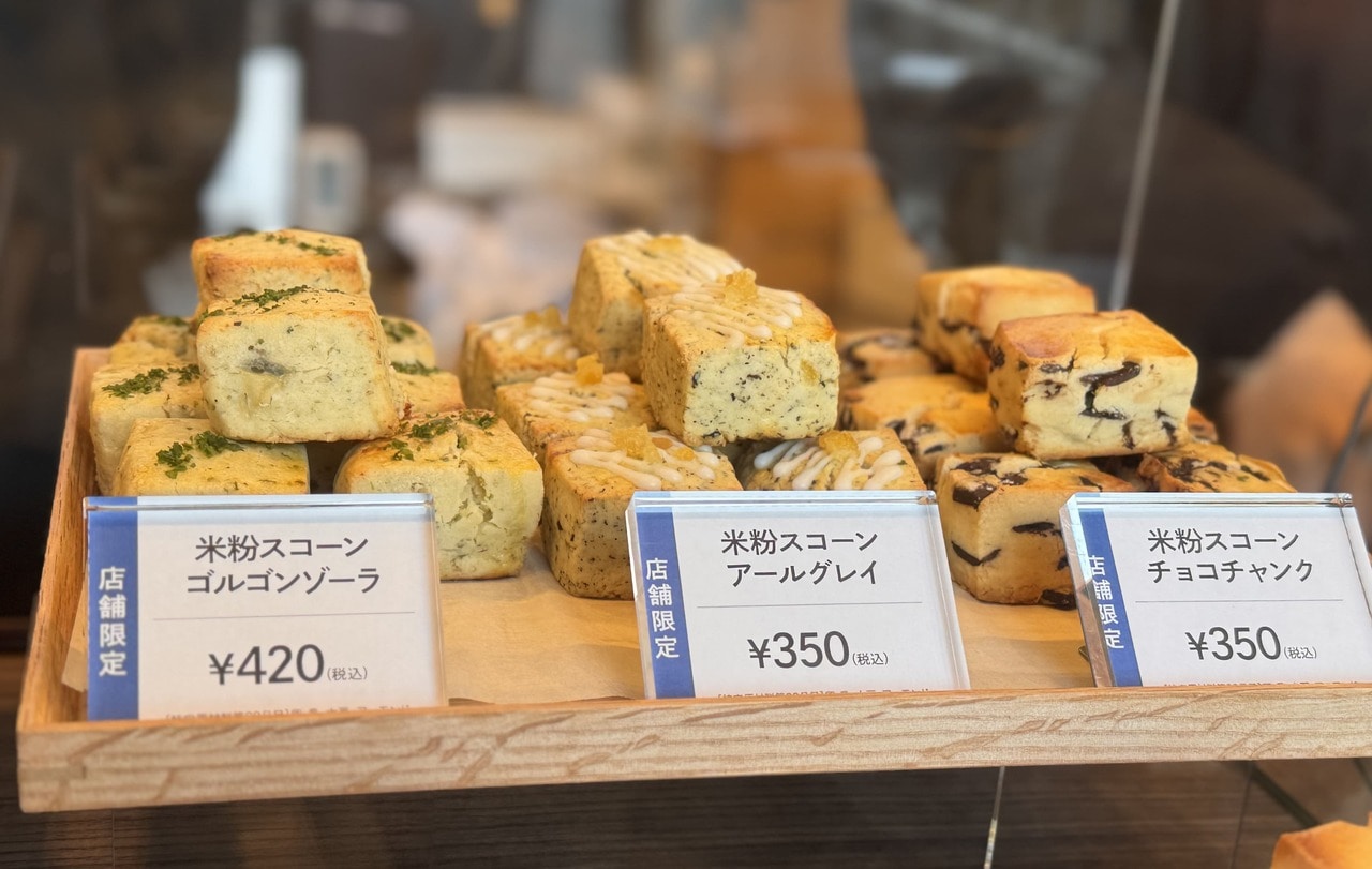店舗限定商品として、国産米粉を使用し丁寧に焼き上げた5種の「米粉スコーン」が新登場。手作業で作られた“ぬくもり”を感じられる素朴な味わいと、外はさくっと香ばしく、中はしっとりやさしい食感に夢中! ヘルシーながらしっかりとした満足感を得られますよ。