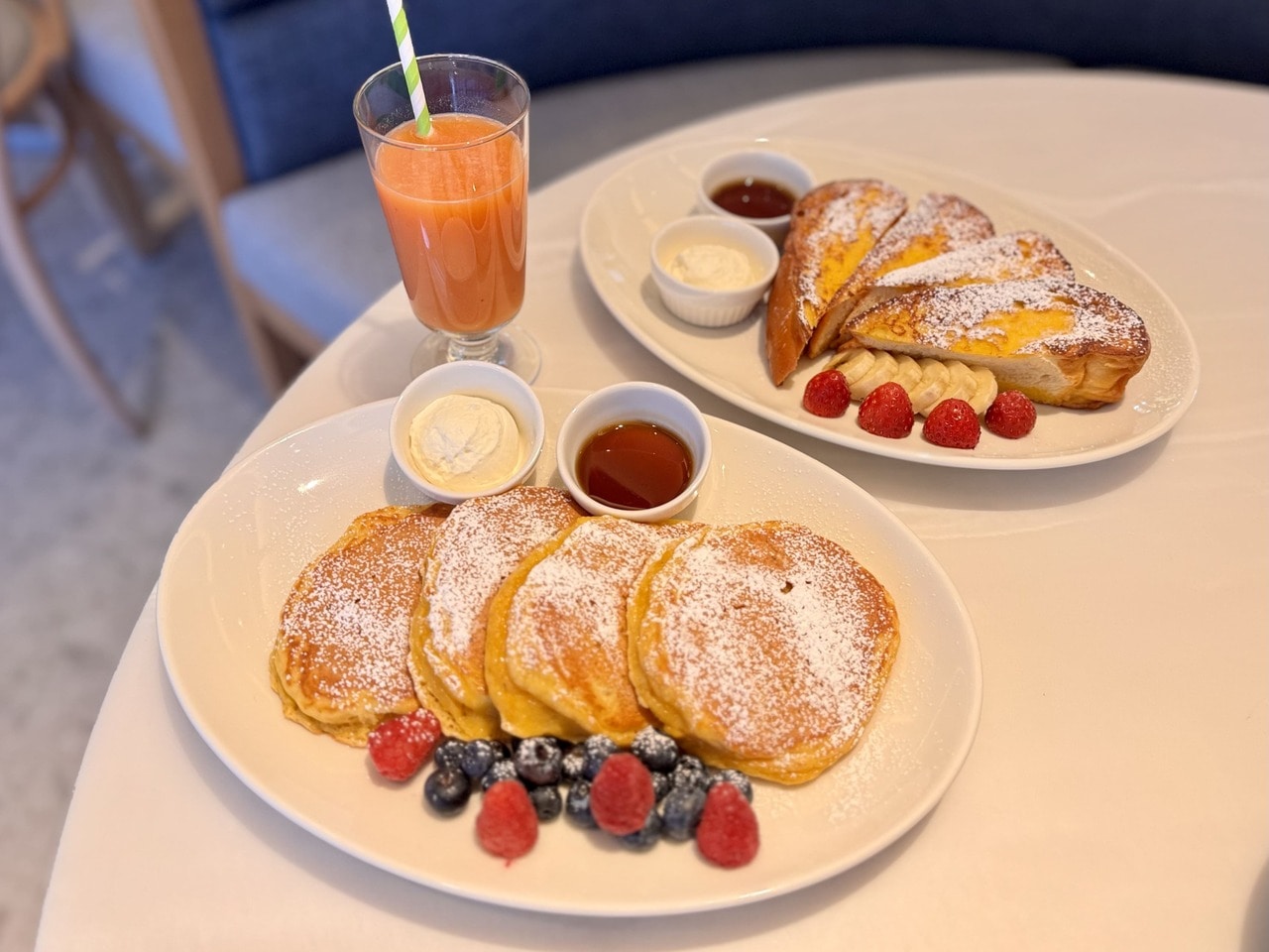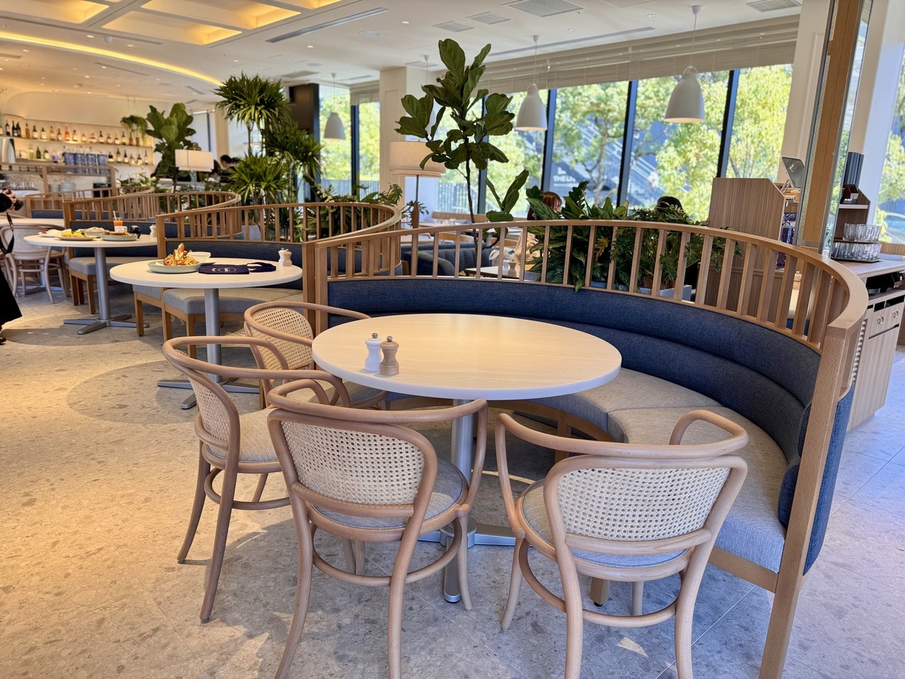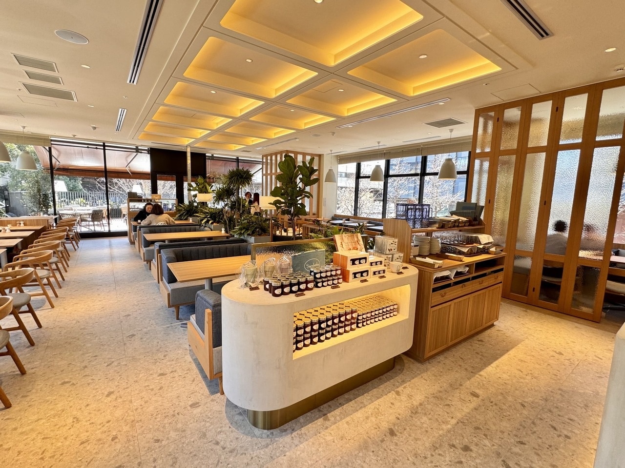 店内は広々と開放的で、ソファー席やテラス席を完備。さらにL字型ソファー付きの半個室もあり、小さな子ども連れでもゆったりランチが楽しめる設計です。家族連れはもちろん、女子会ランチにもぴったりの空間となっています。