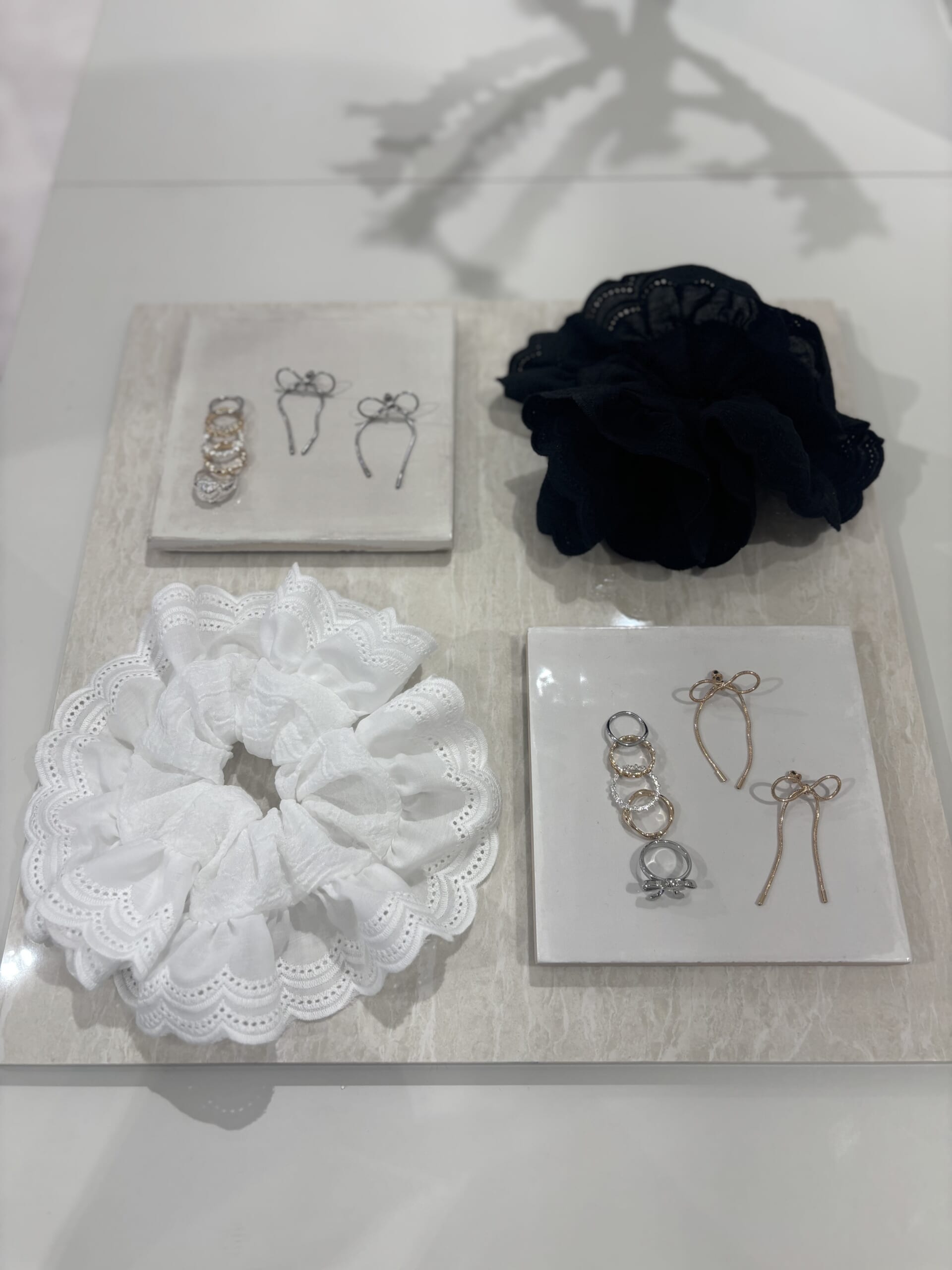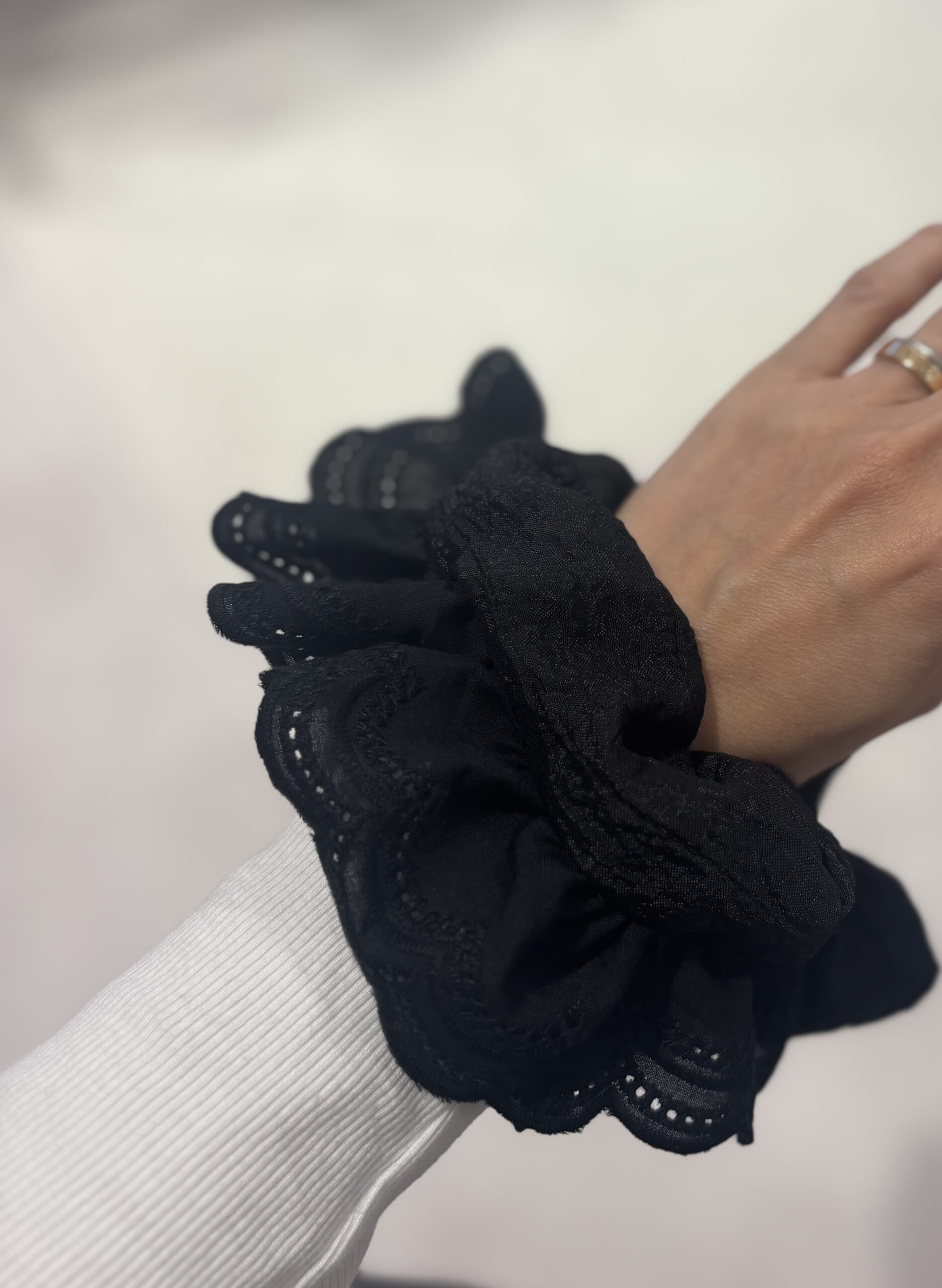 大人のかわいげをさりげなく添えてくれる、レースのシュシュ。