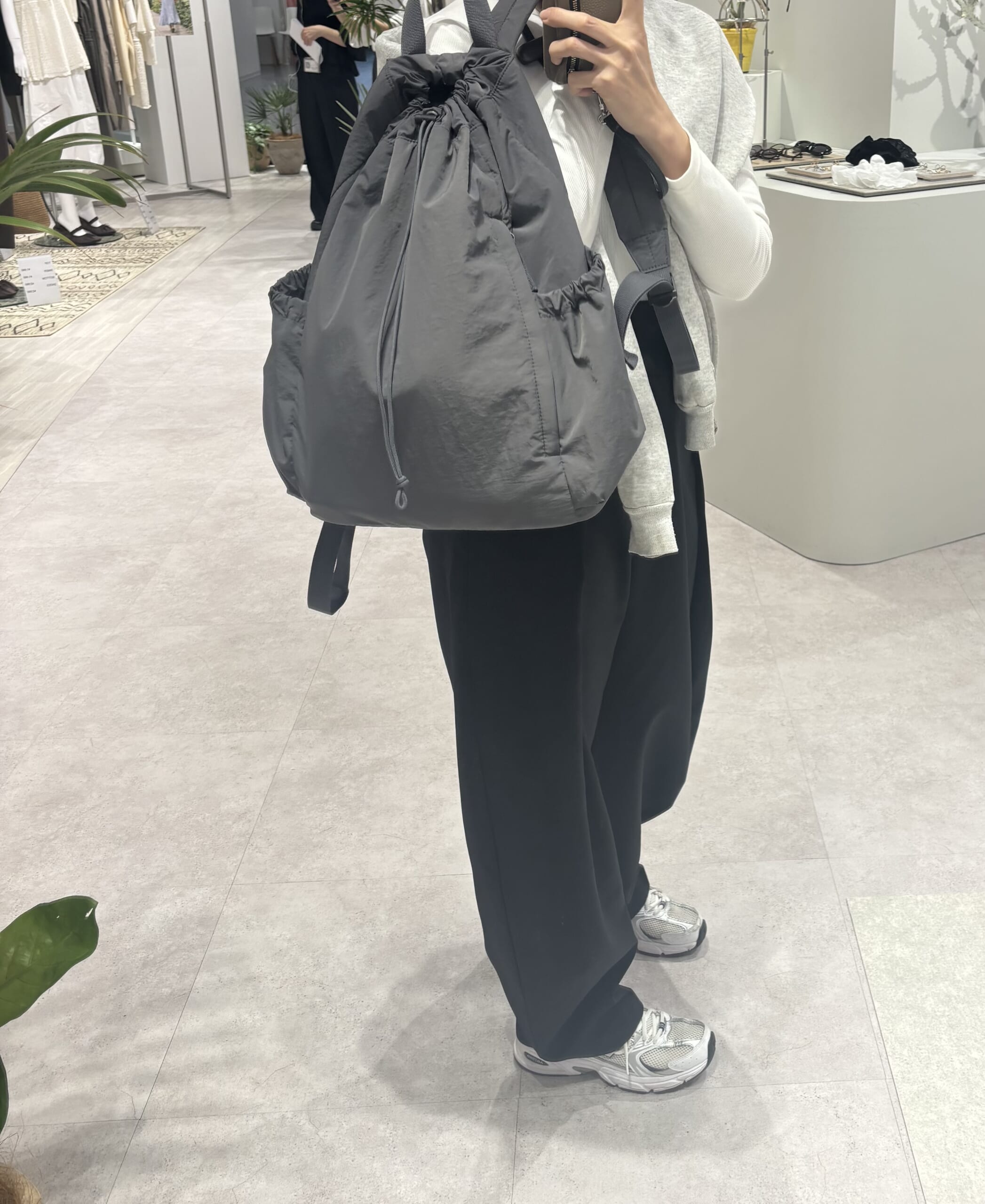ほどよいボリューム感で、シンプルなコーディネートのアクセントにもぴったりです。カラーはホワイトとブラックの2色展開。どちらも使いやすくて悩ましいところですが…結論、どっちも買うのが正解です。