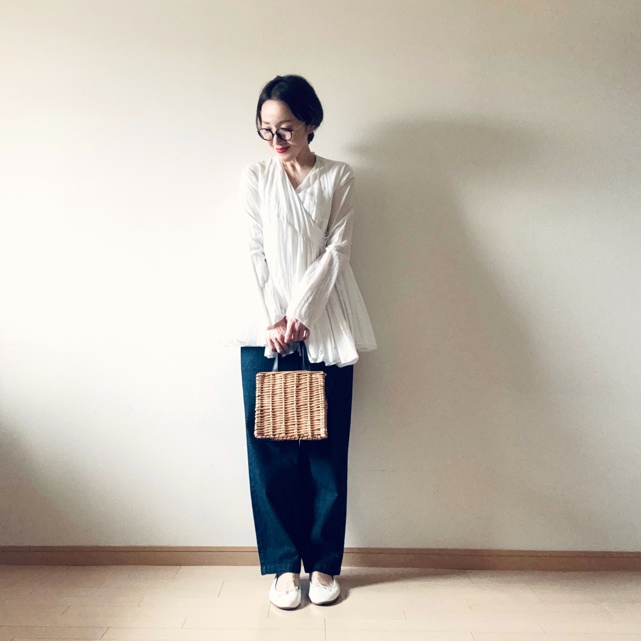 ピンクのブラウスに濃い色のデニムって、どうしてこんなに相性が良いのでしょうか。 軽やかにかごバッグを合わせると、ますます春らしくなっていいなぁと思います。やっぱり春コーデって一番ウキウキしますね。
