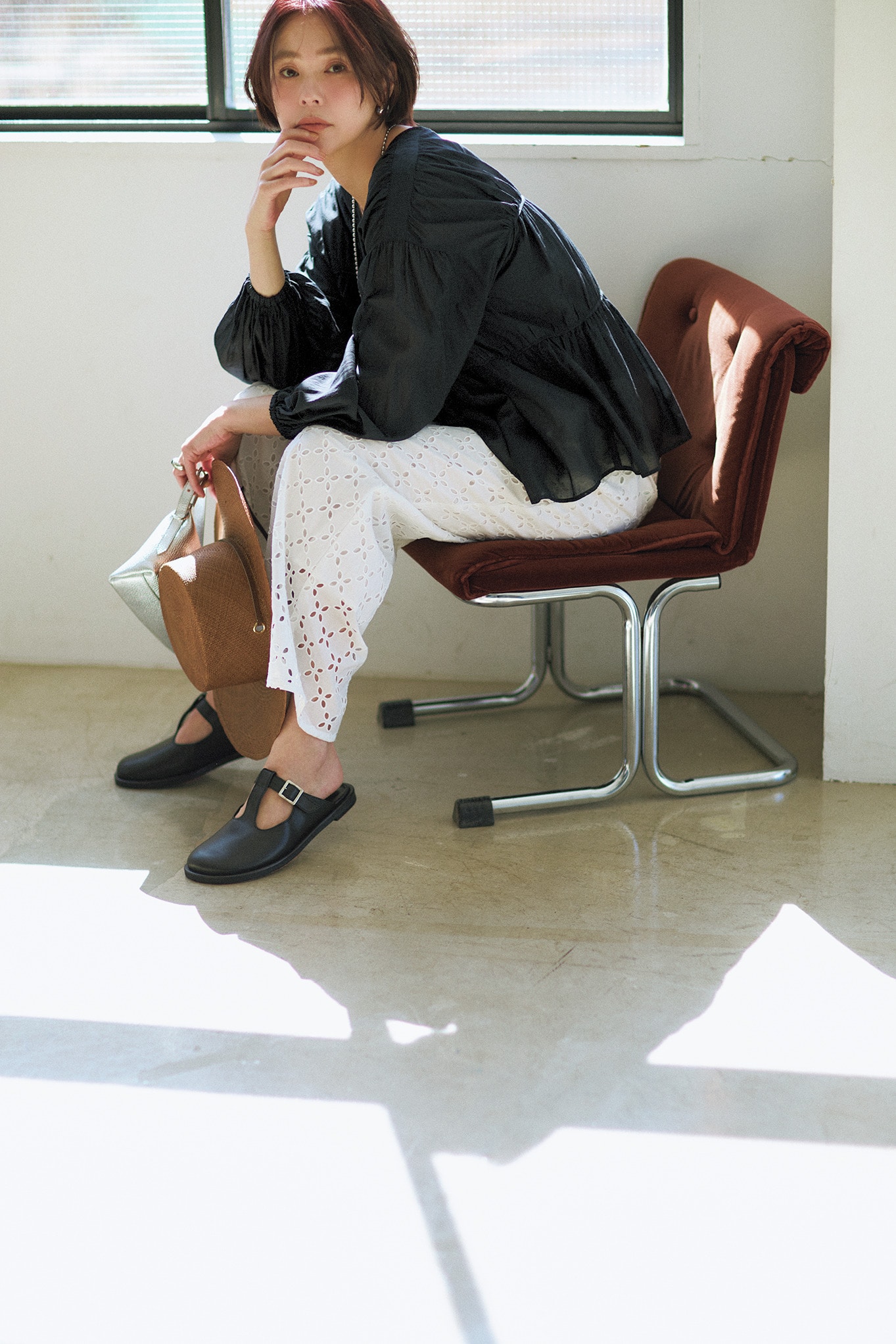 自分に似合っていると思うから、安心できるから、いつも同じパンツばかり。どこかで新しいスタイルを求める気持ちはあるけれど、つい保守的になってしまって次の一手にいけない…まさにそれは私のこと!! 磯部さんとファッションの話をしていると、思わず「それ、試してみたい!」という意欲が湧いてくるのが不思議です。そこで、そんな私にもオススメの今季注目トレンドについて教えてもらいました。