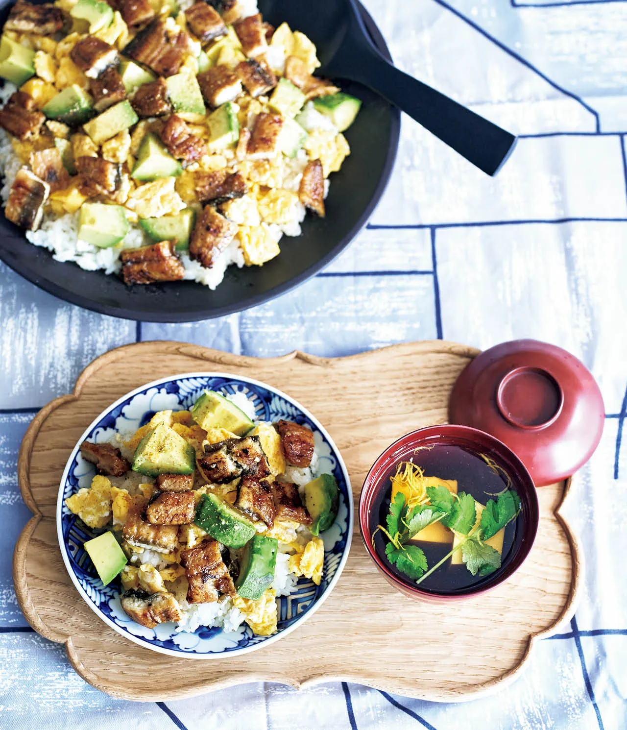 「ウナギとアボカドのバターちらし寿司」、汁もの「卵豆腐と三つ葉のスープ」レシピ/ 長谷川あかりさん