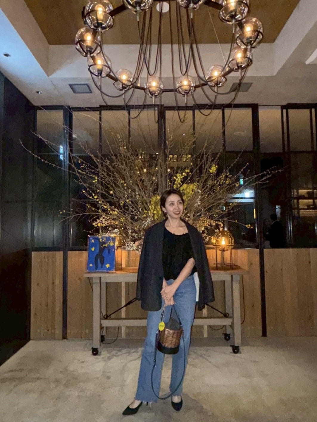 恵比寿の「Blue Note Place」にジャズを聴きに行った日は、デニムでぐっとカジュアルに。とはいえ、TPOに合うように足元はヒール靴で女っぽさをひとさじ。大きめのジャケットを羽織れば、ラフなデニムスタイルも都会的にまとまり、ライブハウスのムードにもぴったり。