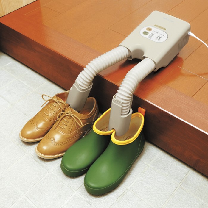 靴を玄関に置いたまま、収縮ノズルを差し込むだけで簡単に使える靴専用乾燥機。