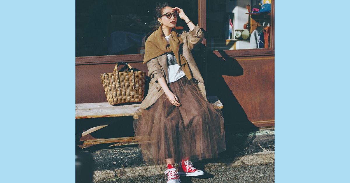 メンズライクなテーラードジャケットで、チュールスカートの糖度を調整/明日なに着る?
