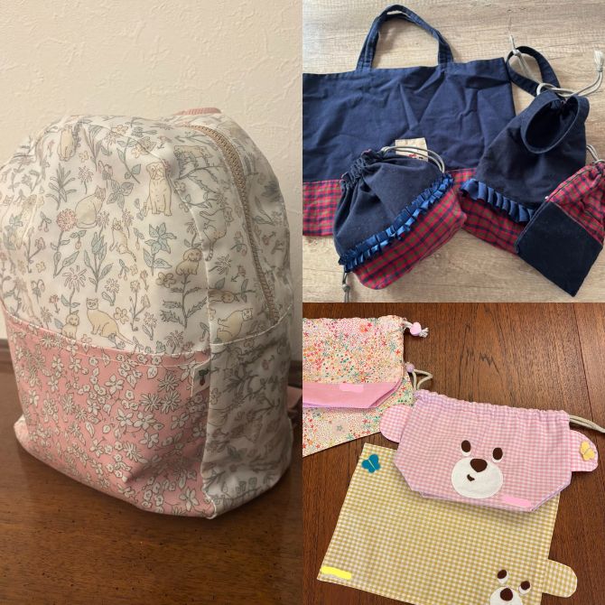 【入園グッズを手作りしました!2名分】リュック、手提げバッグ、お弁当袋、ランチョンマット、上履き袋…LEE読者のハンドメイドアイテムを拝見♪【2026】