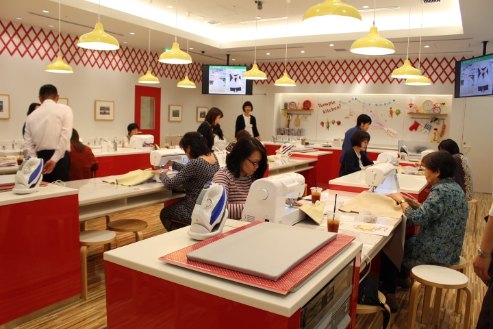 冒頭にデモンストレーションが行われ、その後、1人1台ずつ設置されたミシンで、作業が進められます。ちなみにこのワークショップでは、ブラザーの高機能ミシンを使って作ります。実は普段、まったくミシンを使わない私。今どきのミシンの進化に、正直驚きました!