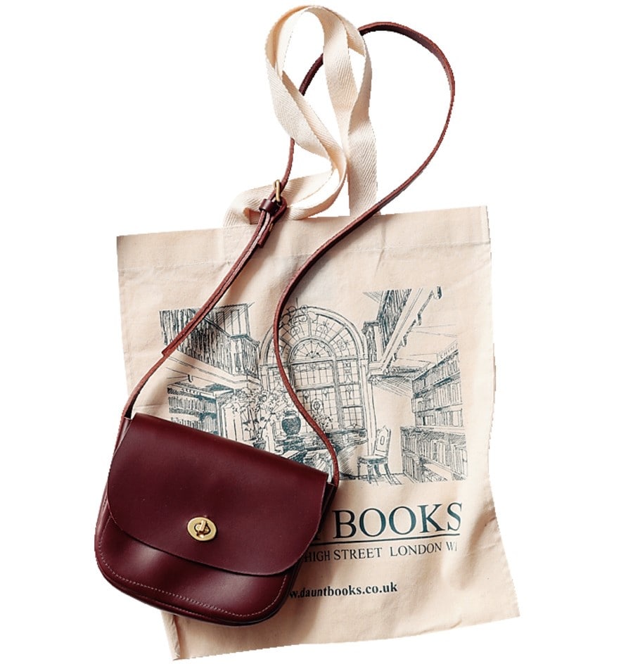 色合い&デザインをクラシカルなトーンに。マチなしの薄手生地だから、堅苦しい印象はゼロ! ポシェット(15×21×6.5)¥39000/マッキントッシュ フィロソフィー 新丸ビル店(ミミ) トートバッグ(40.5×36.5)¥2700/ノストスブックス