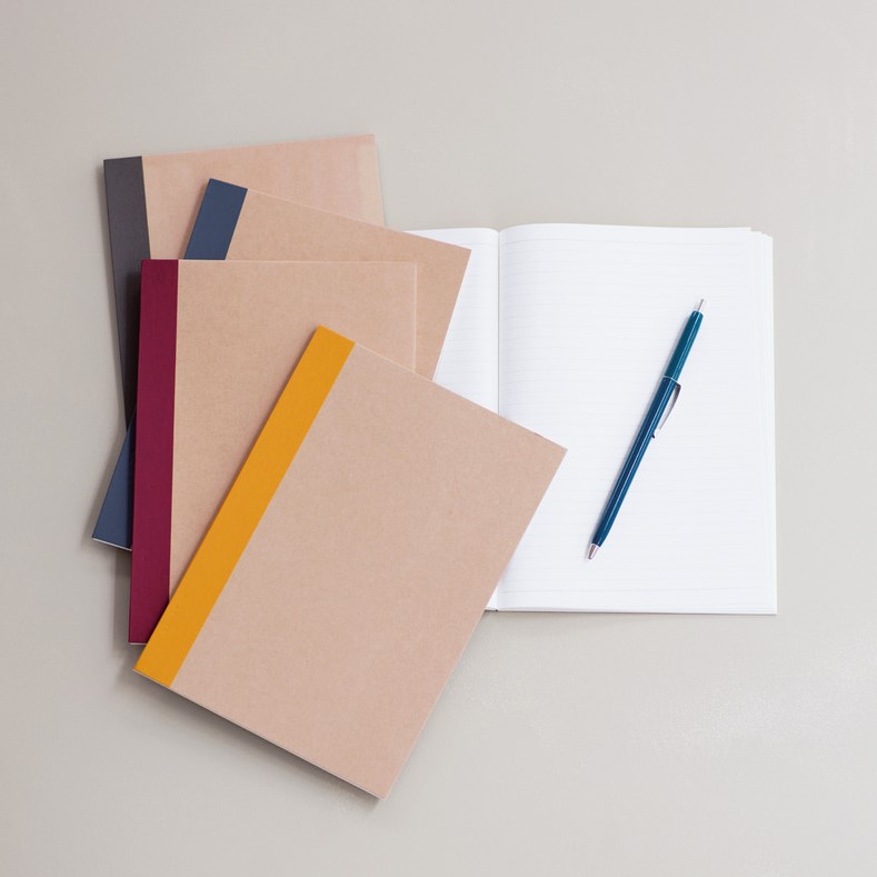 「仕事のメモ、家計簿、子供の記録など、何かと使う機会の多いノートは、同じサイズにまとめておくと、揃えて収納できるので便利。シンプルながら、背表紙の色が異なるので、使い分けがしやすいです」A5 ・30枚¥186