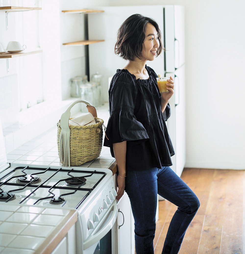 この姿はまさに、いつもの私! 時間のない朝は、お気に入りのデニムにささっとレースブラウスを着るだけ。ふんわりトップスとタイトボトムスは、迷わず手に取れる鉄板バランスです。by 福田麻琴