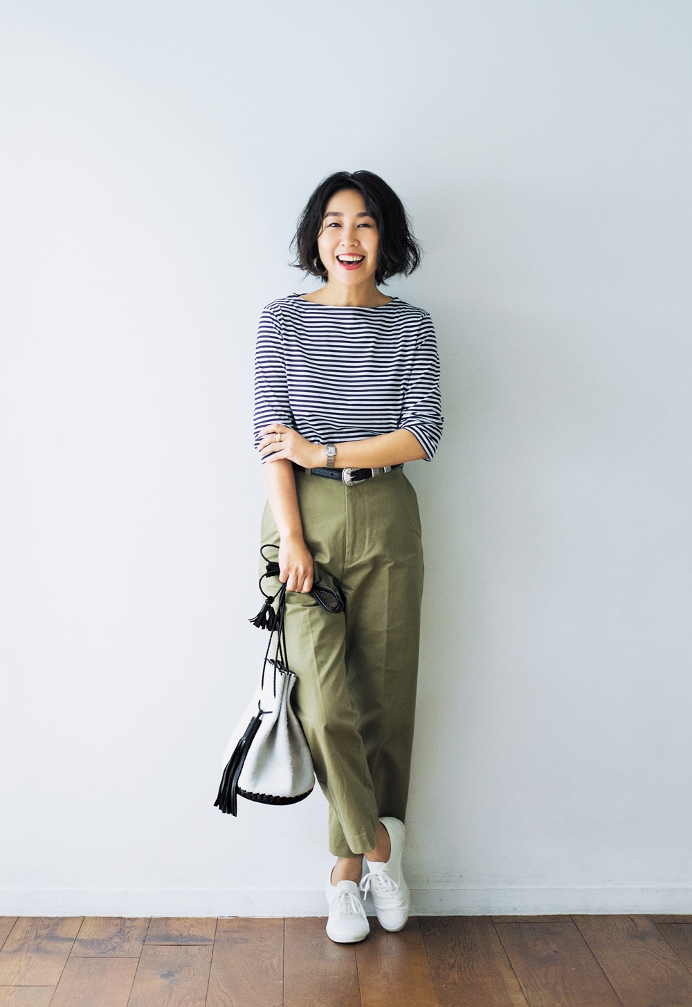 私にとってのド定番、ボーダースタイルが様変わりしました。といっても、カジュアルベースは変わりなく、アイテムを更新しただけ。ベーシック服が持つ、この可能性が大好きなんです。by 福田麻琴