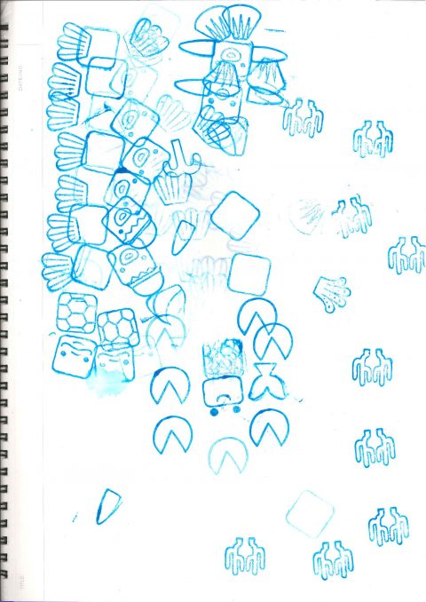 右は本人曰く「ほうれん草、タコさん、チューリップ」だそう。ママとのご近所のお買い物で手に入るものたちで構成されており、3歳児の行動エリアに基づいた近視眼的世界観を感じました。