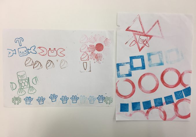 今回は平面に押すのみでしたが、スタンプを押した紙を使って、立体パズルや釣りゲームの紙おもちゃ、クリスマスのツリーや帽子などなど、アイデア次第でいろいろなものが作れそう。