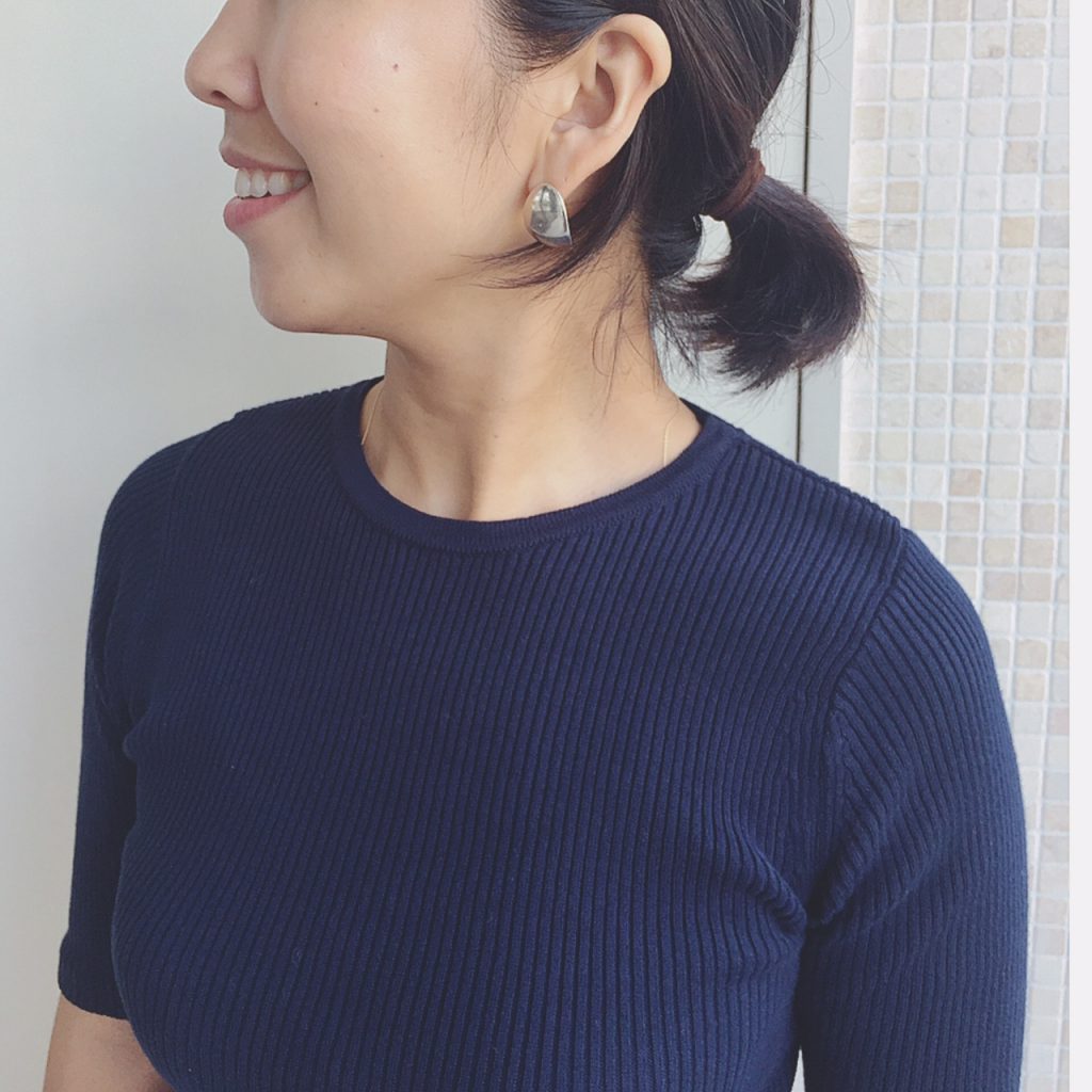 例えばパールのピアスをしてエレガントに仕上げる、とか、ベーシックなデザインだけど、色を取り入れる、とか。